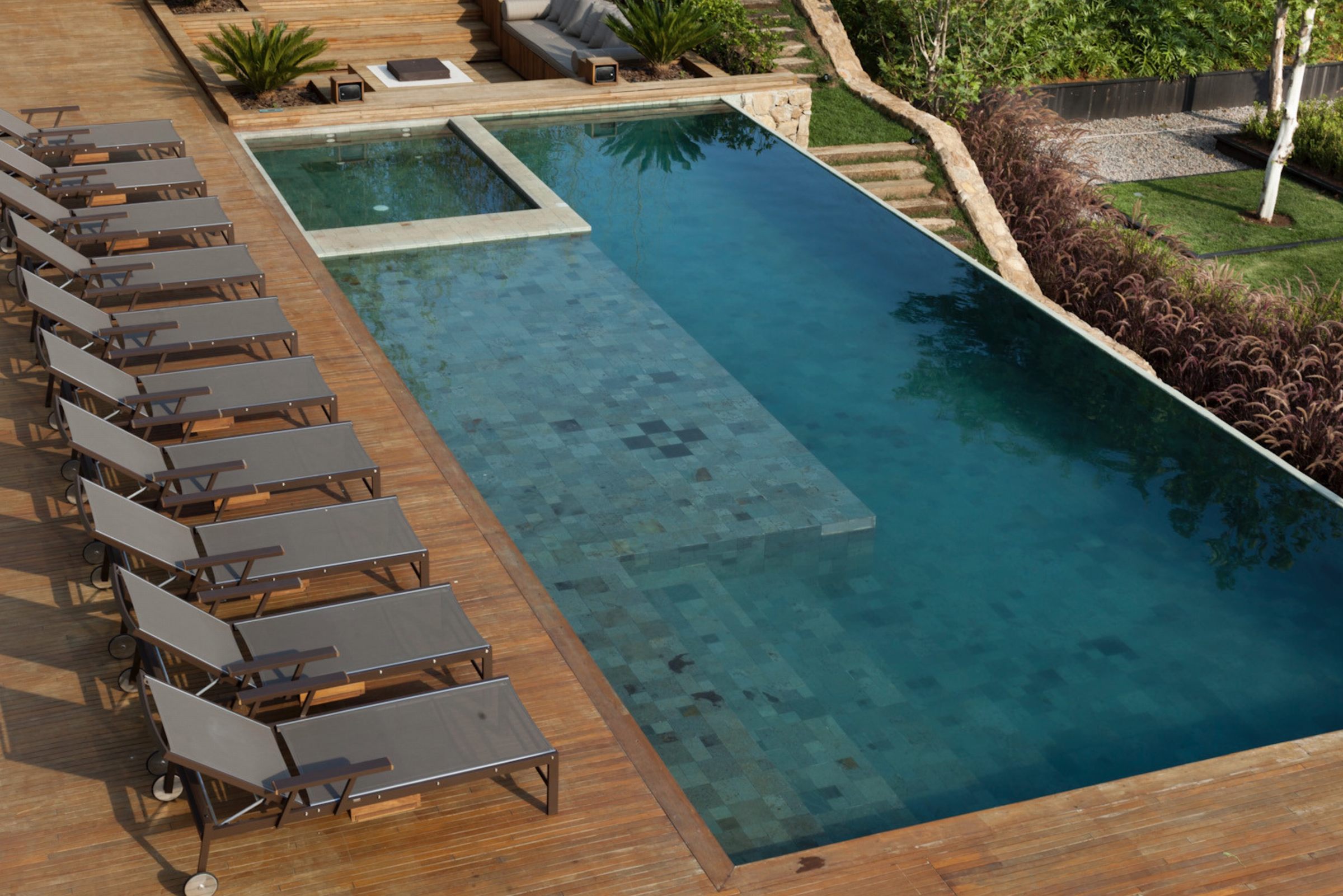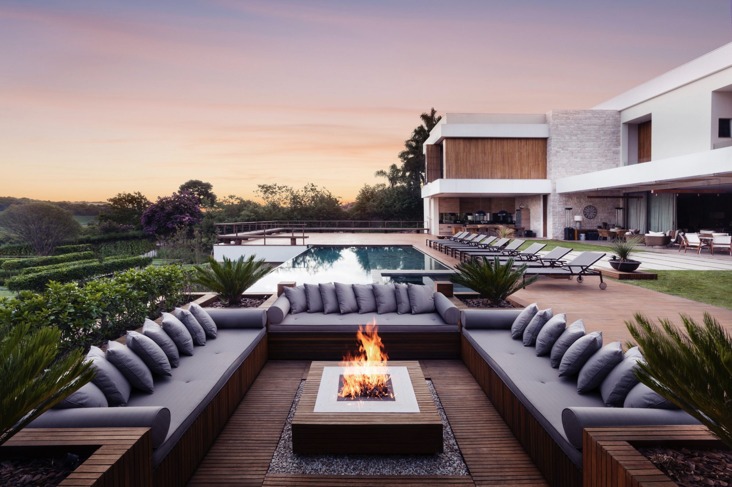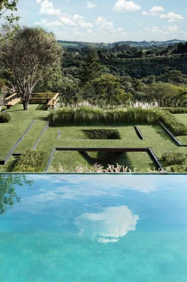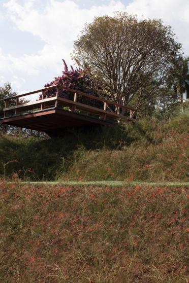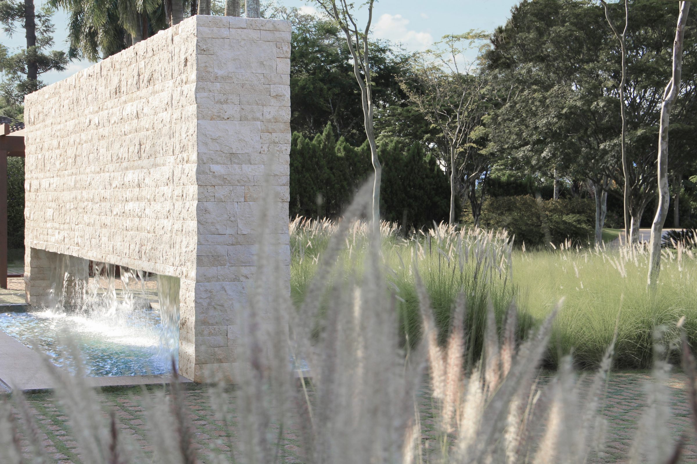 這是一個度假別墅,客戶要求休閑空間與現(xiàn)代風景的景觀相呼應。居民受到一個前花園的歡迎,其中觀賞草提供了輕盈感覺;草 巴西的鐵木樹種植在這個前花園里,最終將形成一個合并到周圍現(xiàn)有樹木的樹冠。