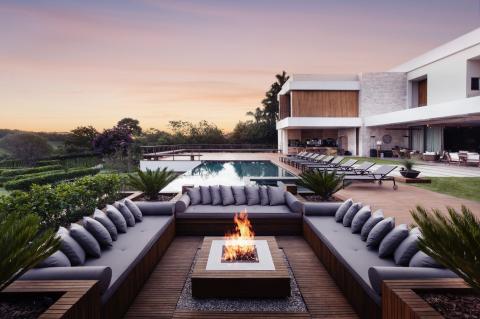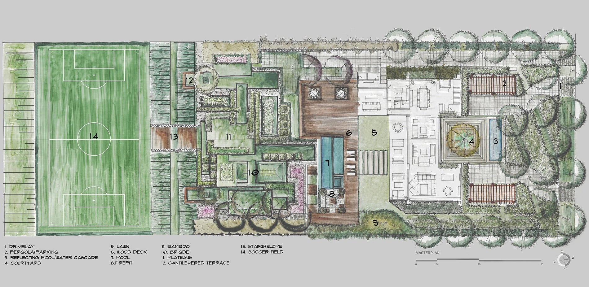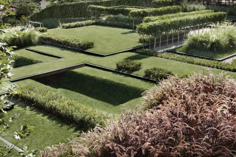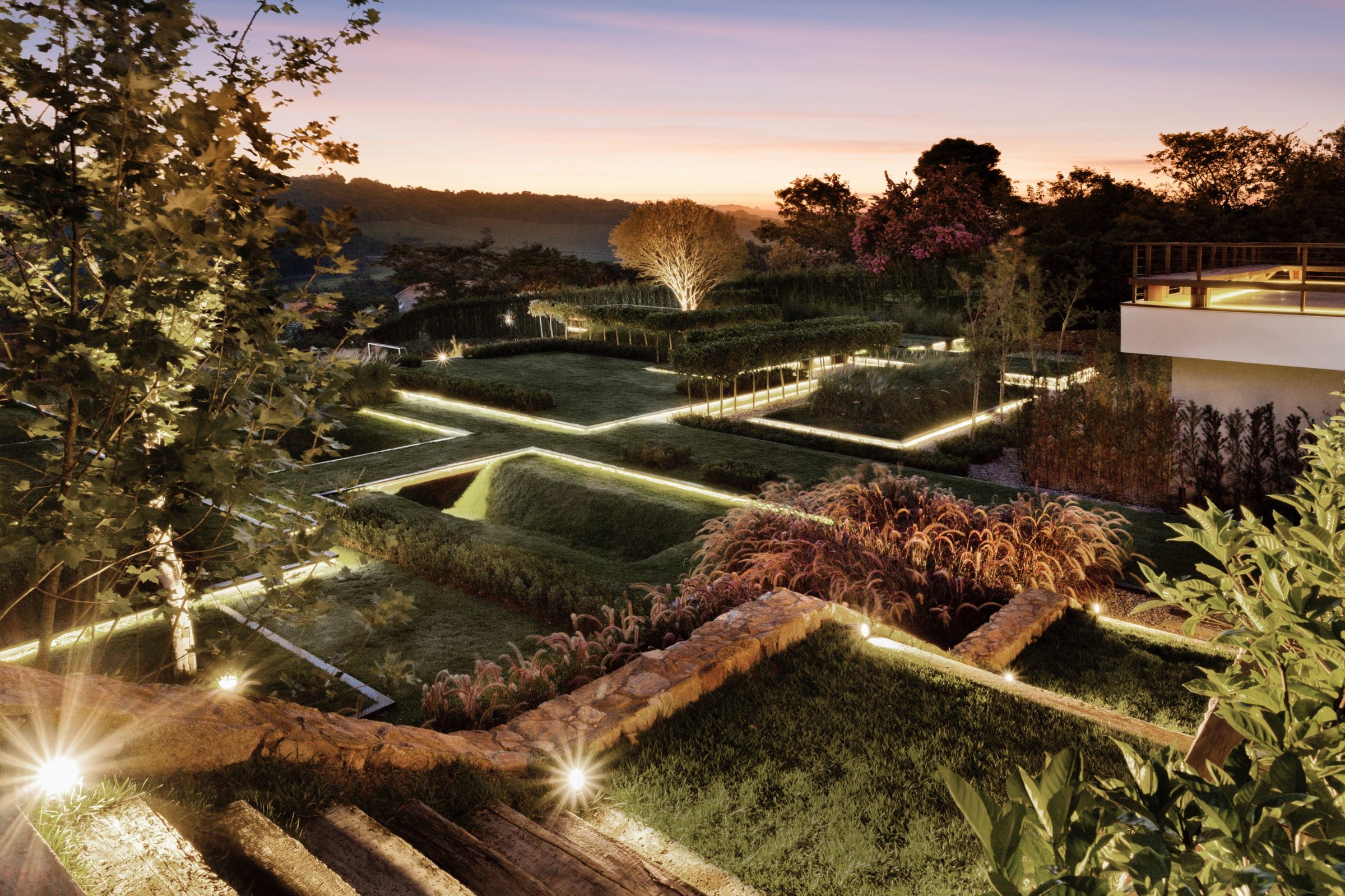 這個別墅的現(xiàn)代線條是景觀設計師創(chuàng)造一個外部空間的起點,旨在模糊景觀的與建筑,并通過塑造地形創(chuàng)造獨特的花園。