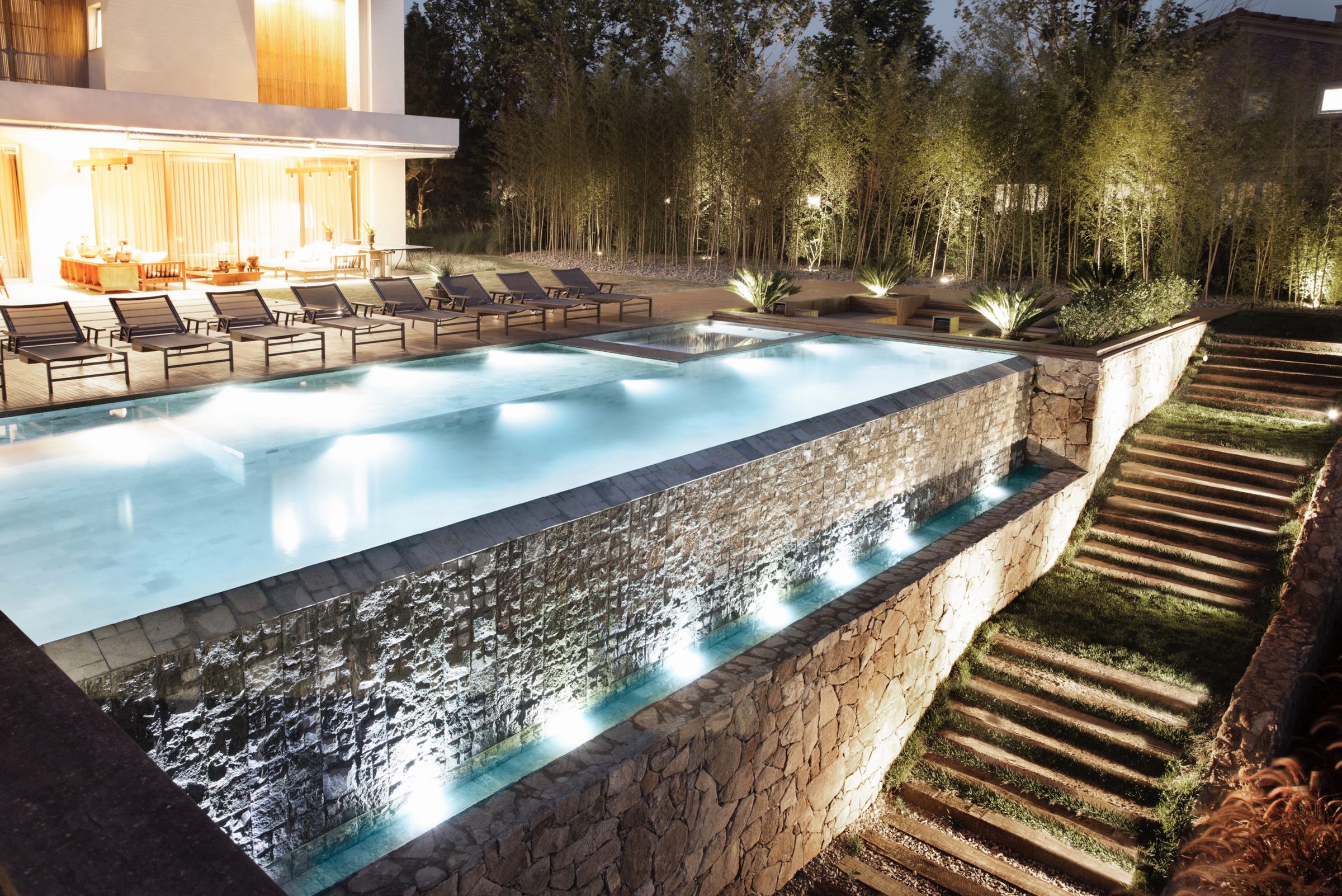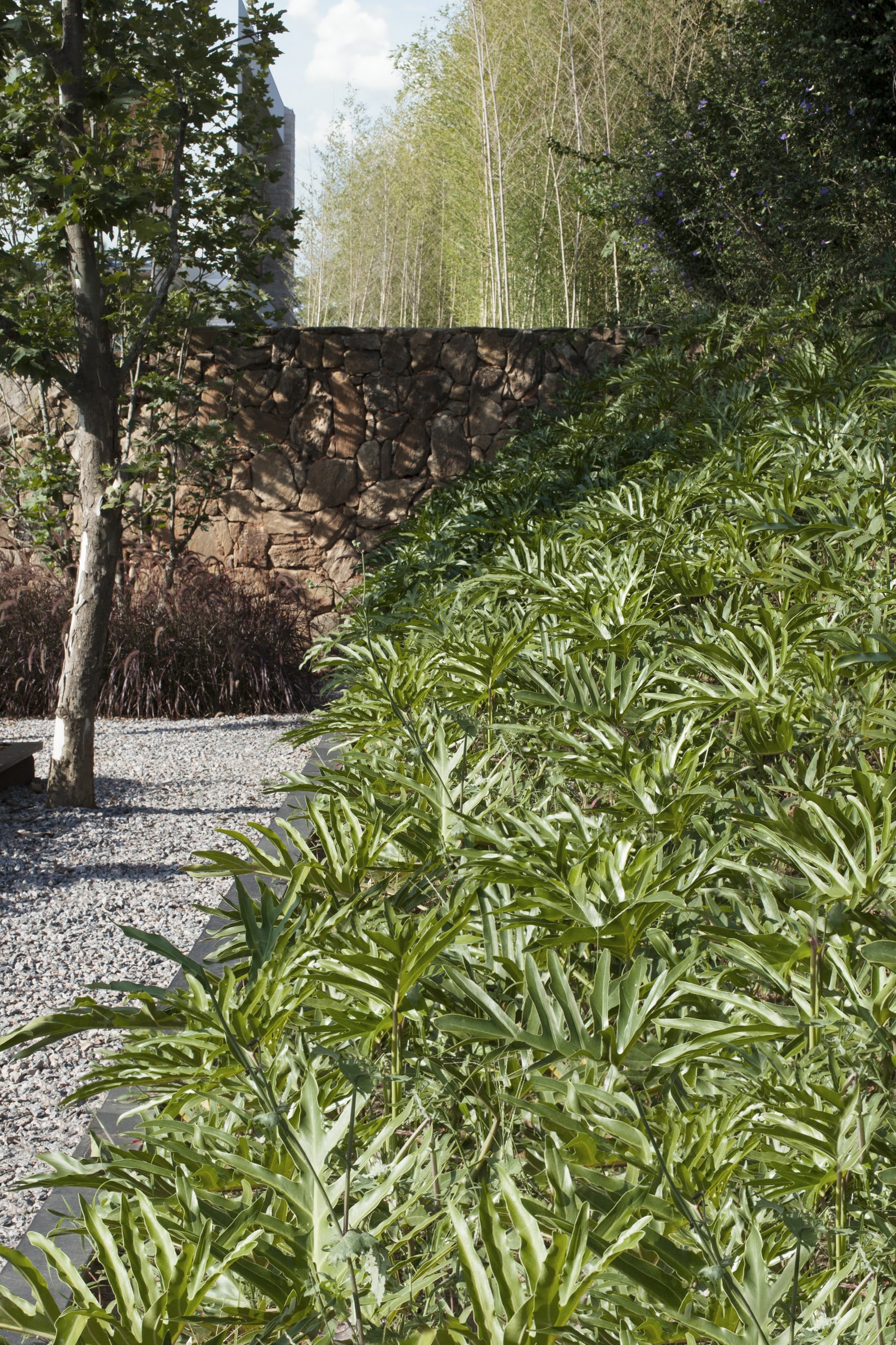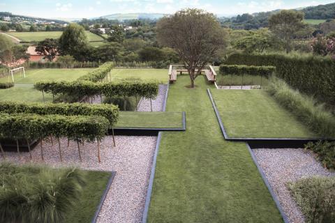 后花園是一個傾斜的地形,被塑造成三個不同的層次,每一個都是為了不同的目的,但總是充分利用視野。土方工程在這個項目的這一部分發(fā)揮了重要作用,所有被挖掘建造房屋的土地和地形的其他部分被用來回填花園。