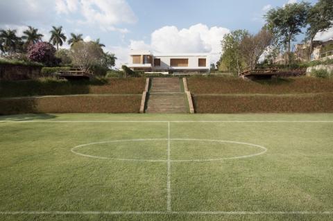在房子的水平上,有一個草坪和一個木制平臺,提供一個聚會空間,家庭可以欣賞到這個景色。