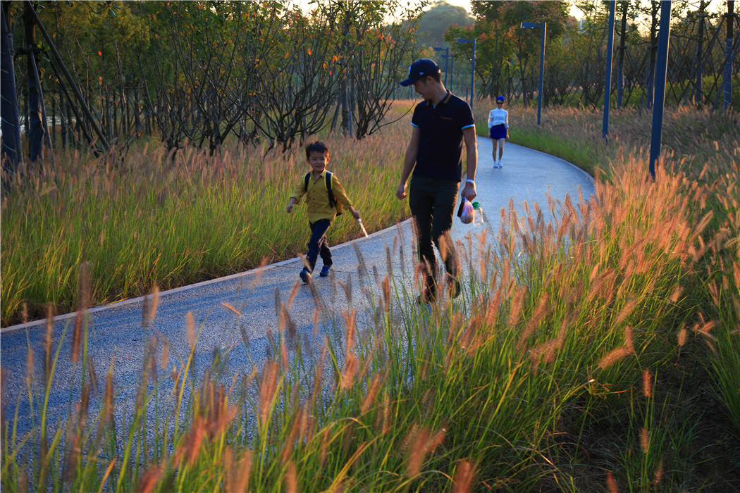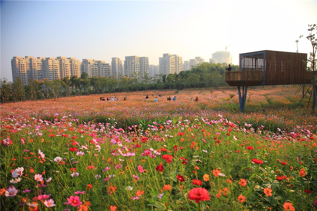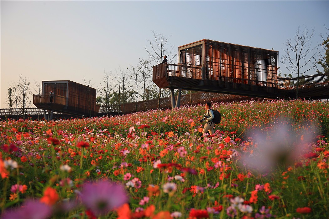 該公園自建成之后,成為當(dāng)?shù)鼐用駱O為喜愛(ài)的休閑游憩場(chǎng)所,也成為衢州市的新名片。鹿鳴公園由此轉(zhuǎn)變成活力熱鬧的城市綠洲,為市民豐富多彩的活動(dòng)提供了理想場(chǎng)所。公園內(nèi)季節(jié)性的絢麗花甸,在社交媒體的傳播下,吸引了大量的市民來(lái)此聚集,也提醒了在城市奔忙的人們對(duì)四季變換的意識(shí),重溫已漸模糊的故土的記憶(中國(guó)城鎮(zhèn)人口的80%,在二三十年前,均生活在農(nóng)村地區(qū))。在風(fēng)和日麗的日子里,園內(nèi)景色尤為動(dòng)人:繁茂的花草之上、高架的涼亭里是歡快嬉戲的孩子們;少年少女們則在花海中甜蜜地互訴衷腸;新婚燕兒在田野里盛裝攝影留念;父母帶著幼子漫步,耄耋夫婦相扶于廊橋之上,眺望正拔地而起的高樓大廈。層層田地,綿延至溪邊,種植著豐產(chǎn)而又美麗的作物,為稠密的城市提供清新怡人的綠色空間。精心設(shè)計(jì)的步道系統(tǒng)將自然景色一一框景入畫,為人們展現(xiàn)著這片土地的歷史和故事,憧憬著更美好的未來(lái)。