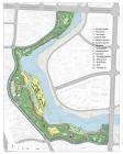 設(shè)計(jì)師被委托將公園打造成集休閑、運(yùn)動(dòng)、游樂(lè)為一體的城市綜合型濱水公園。設(shè)計(jì)探索新的景觀理念,讓城市公園不僅僅是綠色公共空間,同時(shí)作為生態(tài)基礎(chǔ)設(shè)施為整個(gè)城市提供生態(tài)系統(tǒng)服務(wù)。從宏觀來(lái)講,該項(xiàng)目旨在應(yīng)對(duì)當(dāng)下的危機(jī),包括氣候變化、食品安全、能源安全、水資源短缺等問(wèn)題,同時(shí)又讓景觀具備生產(chǎn)性和低維護(hù)性的景觀新美學(xué)。項(xiàng)目中運(yùn)用的理念包括“與洪水為友”、“都市農(nóng)業(yè)”、“最小干預(yù)”等,在利用山水格局和自然植被的基礎(chǔ)上,通過(guò)“覆被”(Quiting)和利用棧道及游憩網(wǎng)絡(luò)來(lái)“框架”(Framing)山水和植被,來(lái)實(shí)現(xiàn)景觀的改造。