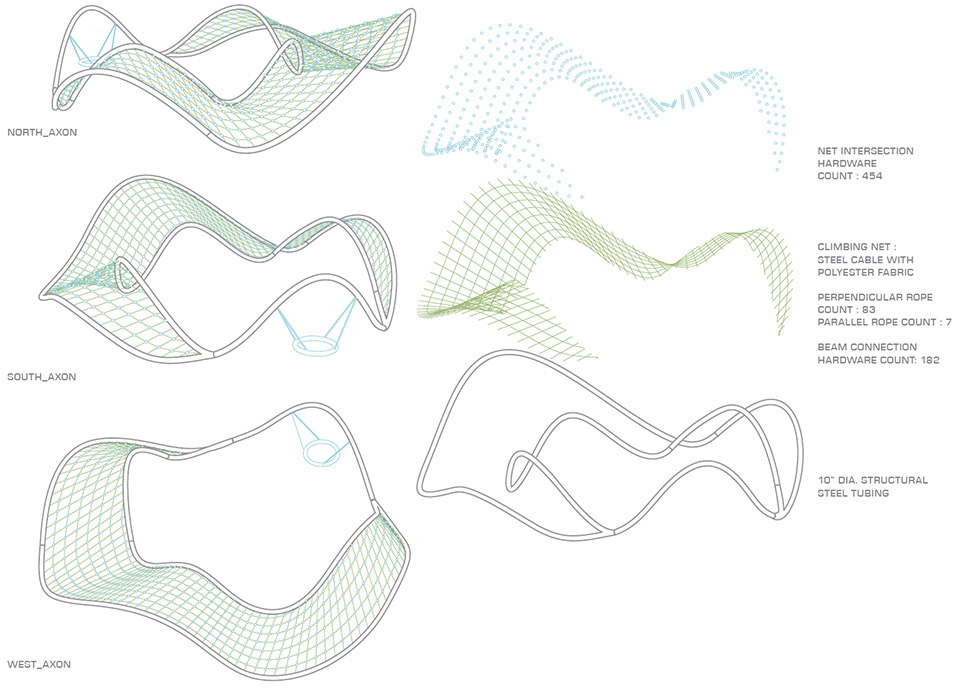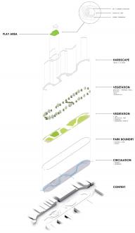 一系列矮墻環(huán)繞公園外圍而設(shè),它不僅限定了公園的外部邊界,為公園內(nèi)部提供必要的遮擋和維護(hù),也為行人提供了臨時(shí)休憩之所。公園的路徑系統(tǒng)由構(gòu)造簡(jiǎn)單且易于變換的結(jié)構(gòu)部件組成,這使得場(chǎng)地環(huán)境可根據(jù)現(xiàn)場(chǎng)條件進(jìn)行多樣化轉(zhuǎn)變。公園路徑系統(tǒng)由現(xiàn)場(chǎng)澆筑,以及現(xiàn)場(chǎng)澆筑的混凝土板和砌塊構(gòu)成。這一構(gòu)造方式使得步行道路在寬度變化上非常連貫,并充分適應(yīng)內(nèi)外部區(qū)域的特殊要求。