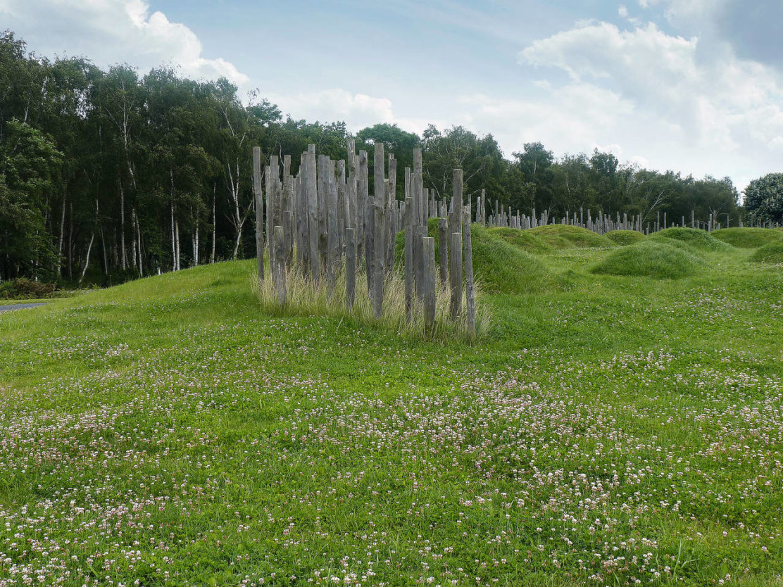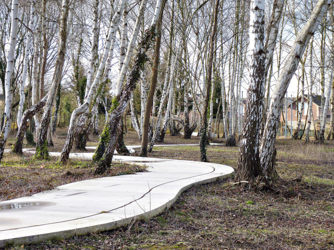 沿著樹林的邊緣一路向前走,避開鐵路沿線和鄰近街道的噪音,這條小道一直通向一片廣闊的草地,四周都是樹木。公園內(nèi)豐富的肌理會引起游客們的好奇心,吸引著人們跟著小道的方向一步步深入公園,探索這座如同竹節(jié)蟲般與自然環(huán)境融合在一起的博物館公園。這座公園的設(shè)計理念便是進一步提升景觀品質(zhì)而不是粗暴的侵占。幾個建筑體量的增加形成了一種調(diào)控手段,避免場地“超載”,避免由于大型功能建筑的介入而破壞了整個公園的宜人尺度。