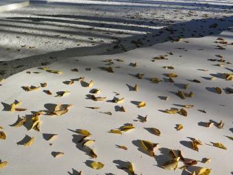 ▼刻有紀念性文字的混凝土“島”,上面栽種著表示緬懷的白花植物