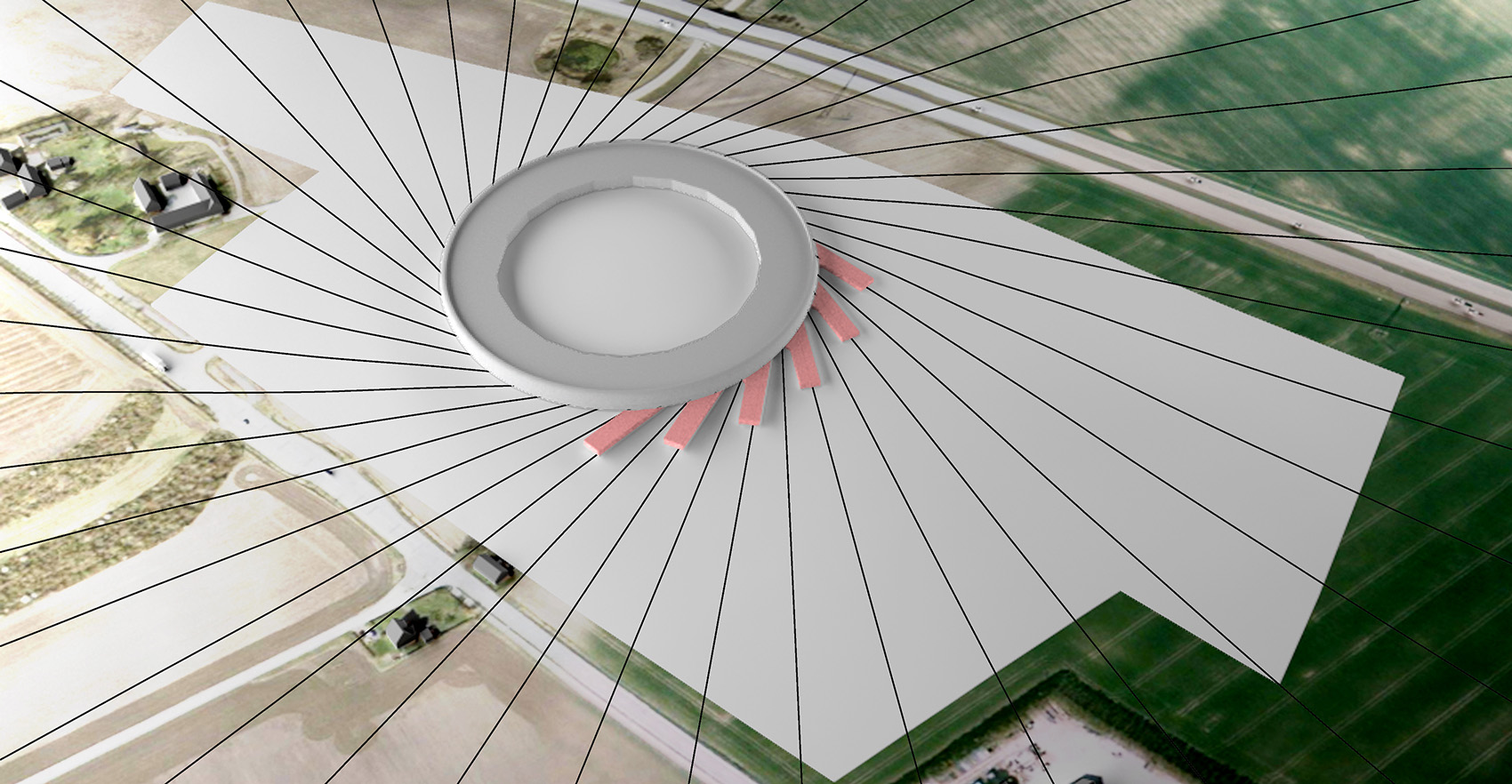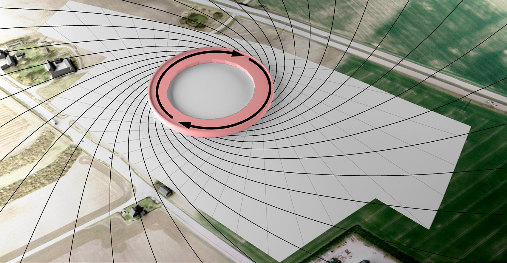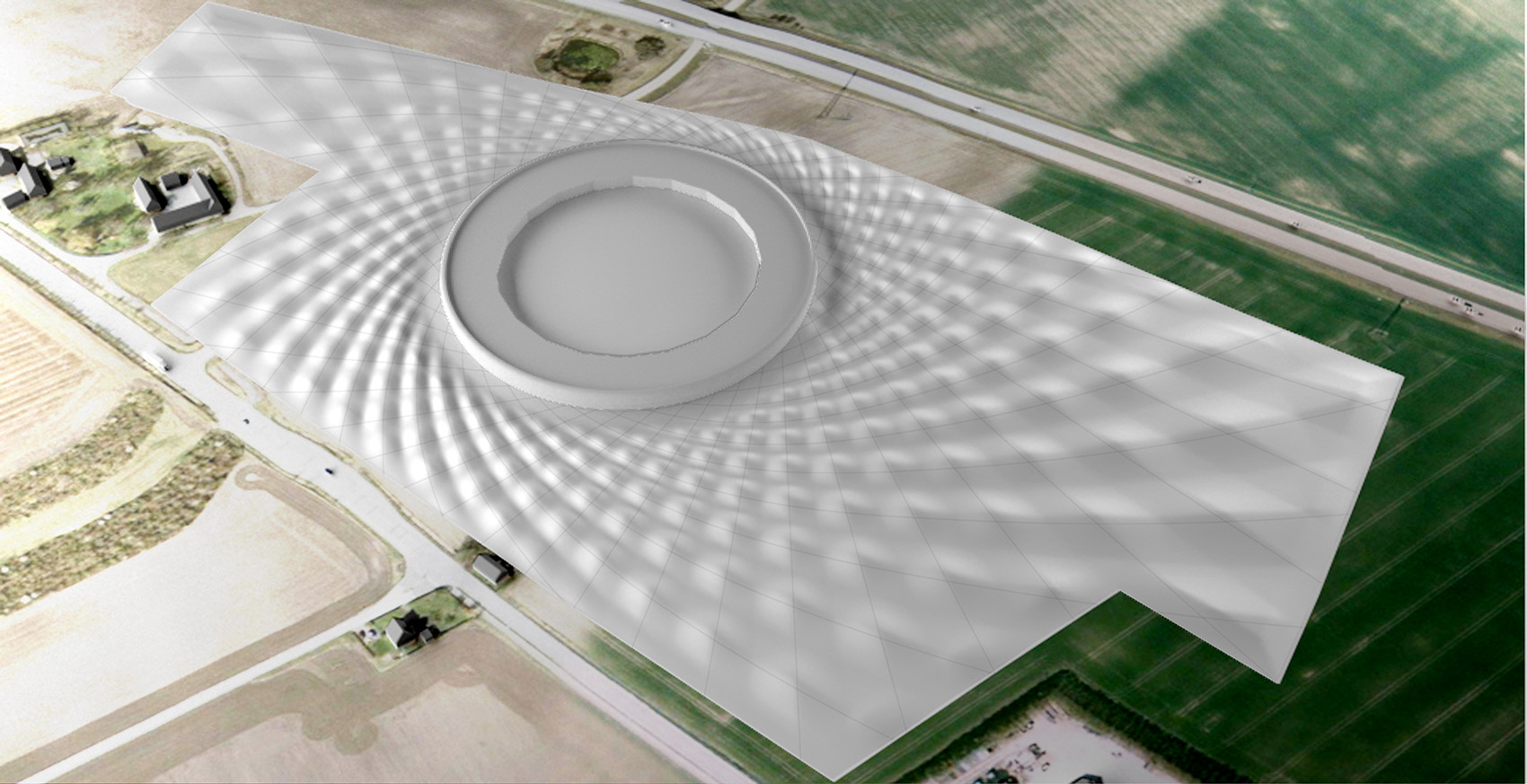 在MAX IV實(shí)驗(yàn)室,地面振動(dòng)的波長(zhǎng)通常在10到40m之間,并沿著地表傳播。因此,周邊景觀(guān)設(shè)計(jì)的越平坦,這些振動(dòng)越可能干擾到實(shí)驗(yàn)室的實(shí)驗(yàn)。而這個(gè)物理常識(shí)啟發(fā)了設(shè)計(jì)師設(shè)計(jì)多丘陵地形的想法,形成了一個(gè)大膽的景觀(guān)結(jié)構(gòu),并且這個(gè)做法維持了水土的平衡。3D建模在這個(gè)項(xiàng)目中發(fā)揮了至關(guān)重要的作用,有以下幾個(gè)原因。通過(guò)從振動(dòng)的性質(zhì)中提取的數(shù)據(jù)輸入到通用模型軟件(Grasshopper; Rhino插件),依靠輸入的合理值來(lái)建立景觀(guān)布局。 在計(jì)劃中,依照主存儲(chǔ)環(huán)輻射的交叉切線(xiàn)形成波形的第一道基礎(chǔ)。這些輻射會(huì)與未來(lái)實(shí)驗(yàn)室潛在的位置相一致,起點(diǎn)設(shè)在10到40米的振動(dòng)波長(zhǎng)位置和4.5米振幅處。動(dòng)力學(xué)團(tuán)隊(duì)強(qiáng)調(diào)說(shuō),景觀(guān)波浪越混亂,減震效果越好。第二組波浪是從存儲(chǔ)環(huán)中心的螺旋運(yùn)動(dòng)向外輻射,到場(chǎng)地邊界截止。其中的數(shù)字模型能夠持續(xù)測(cè)試這種模式對(duì)減輕地面震動(dòng)的影響。
