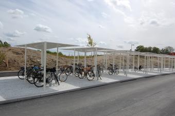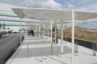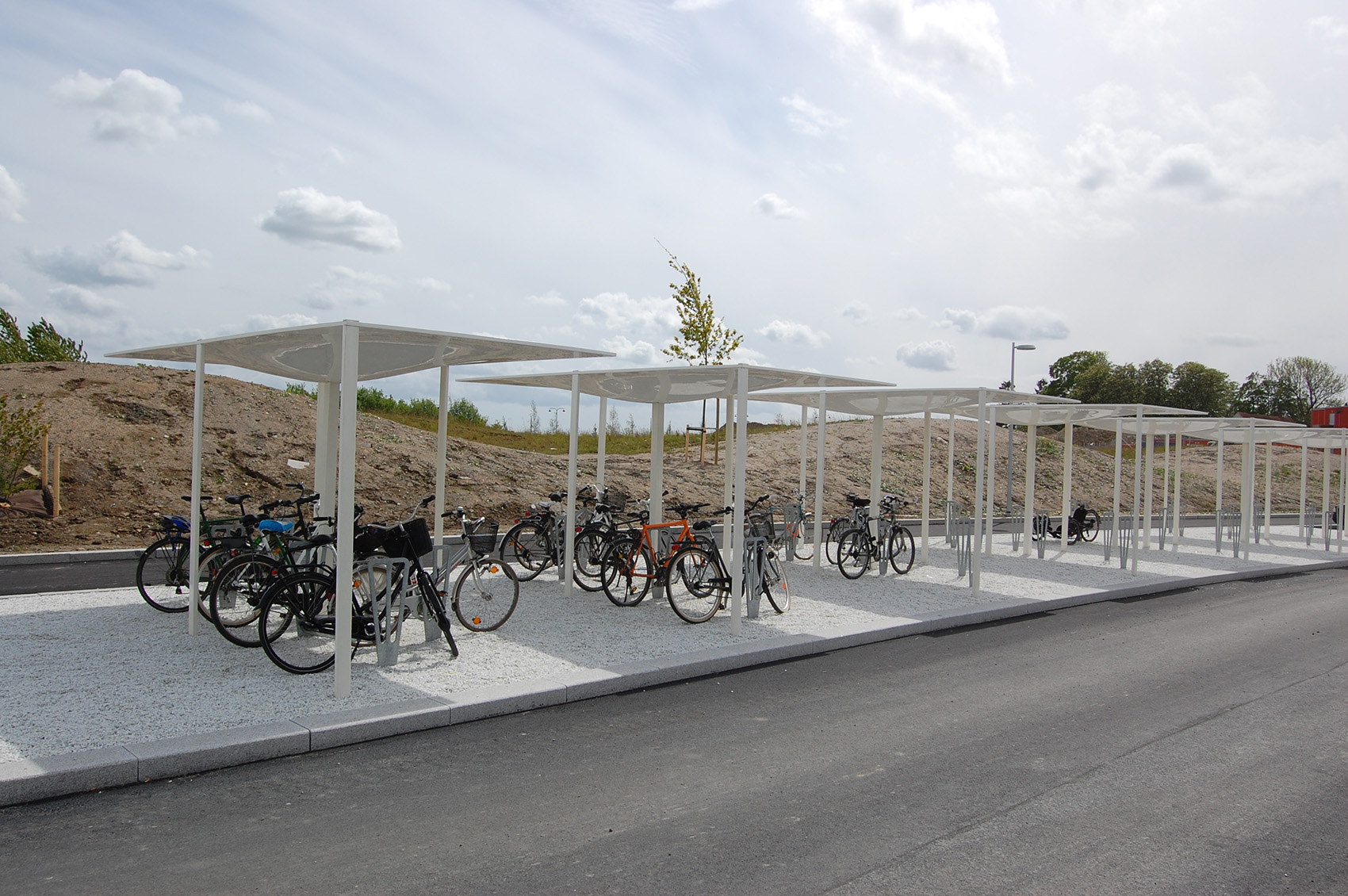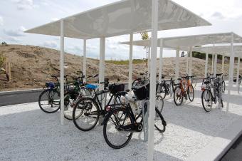 ▼自行車(chē)停車(chē)處采用透水碎石鋪裝,便于收集場(chǎng)地內(nèi)雨水