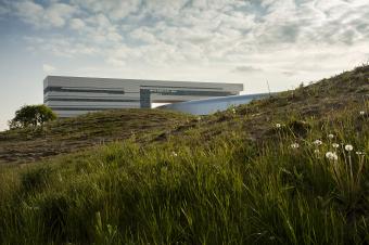 將前衛(wèi)的幾何形狀塑造成地形仍然是我們今天在設(shè)計(jì)中面臨的最大挑戰(zhàn)之一。 在MAX IV實(shí)施的過(guò)程就像是用一個(gè)巨大的3D打印機(jī)以1:1的比例生成這個(gè)項(xiàng)目。高科技研究設(shè)施與低科技草地塑形一起創(chuàng)造出的這個(gè)波浪型的標(biāo)志性景象,保護(hù)了研究設(shè)施免受振動(dòng)影響。這個(gè)數(shù)字模型通過(guò)機(jī)器操作員的塑造和由綿羊?qū)υ莸鼐S護(hù)是這個(gè)項(xiàng)目的最終模擬詮釋?zhuān)@個(gè)項(xiàng)目也為觀(guān)者講述了一個(gè)發(fā)生在實(shí)驗(yàn)室里的有趣并十分實(shí)用的故事。