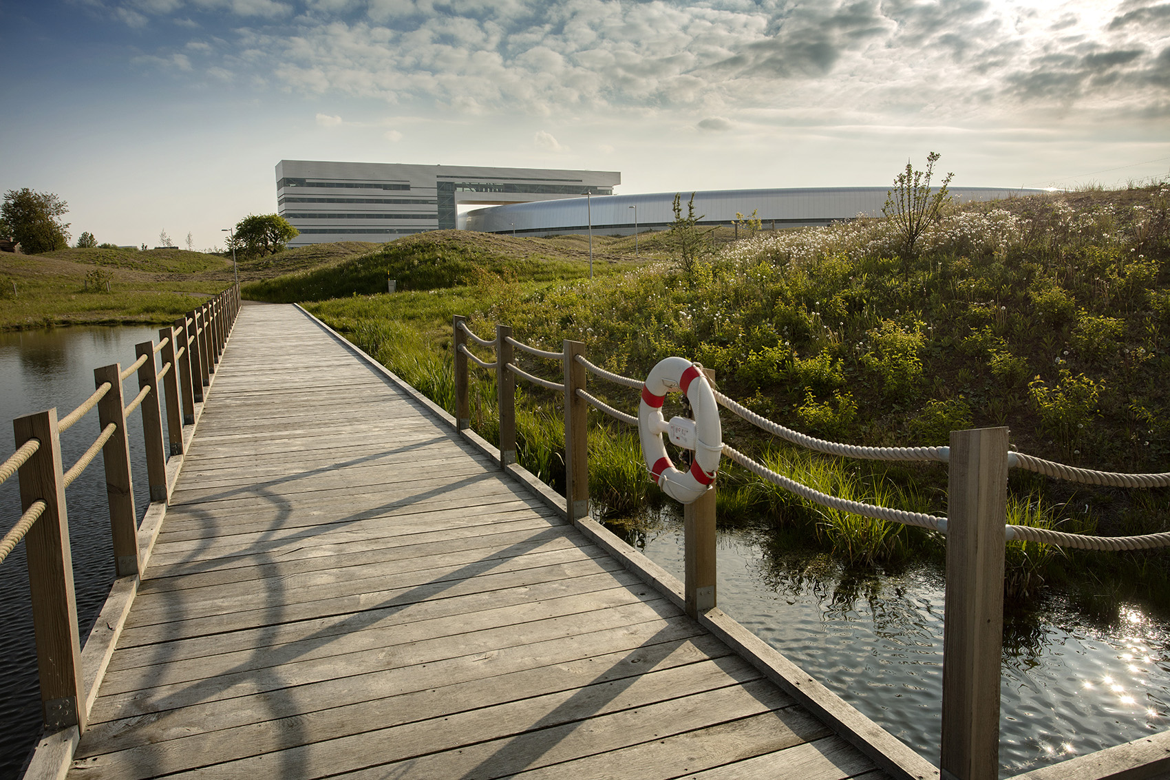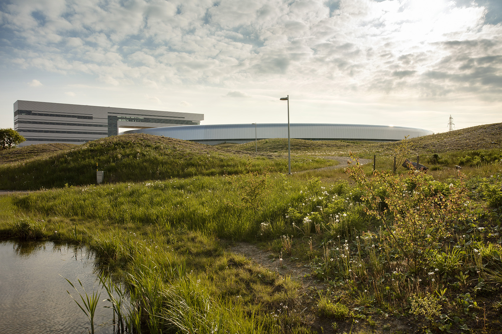 1 – 減輕地面振動(dòng):研究人員和工程師測(cè)試顯示,由附近E22高速公路導(dǎo)致地面振動(dòng)可能會(huì)影響實(shí)驗(yàn)室的實(shí)驗(yàn)。 而由于所營(yíng)造的斜坡和多變的表面影響,地面振動(dòng)頻率已經(jīng)降低了。