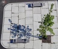 ▼斷開(kāi)的大面積硬質(zhì)鋪裝,提供了雨水下滲通道