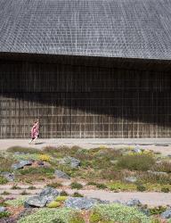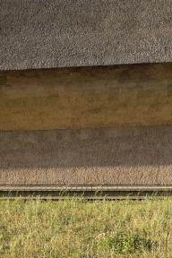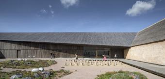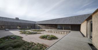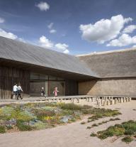在延伸和改造后的瓦登海游客中心能看到一片人造景觀。瓦登海游客中心宛若一片廣袤沼澤地中的小島,被一排排沙棘構成的“哈哈溝”隔離出來。 這個庭院憑借極具表現力的幾何形稻草和木頭圍墻來抵御強烈的西風。稀疏的樹木和灌木打開了一片巨大的景觀視野,在此可以觀賞到丹麥“黑太陽”– 歐洲星椋鳥在上空偏偏起舞。