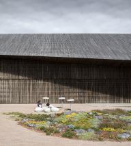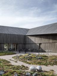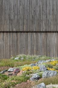 所使用材料的特性和結構充分滿足了建筑和景觀的需要。 Slotsgrus礫石和當地的花卉、草藥構成了一種特別的搭配,并將 一片雜草叢生的池塘變成了一個收集雨水花園。游客可以通過搭設在其中的木棧道穿行在建筑之間。