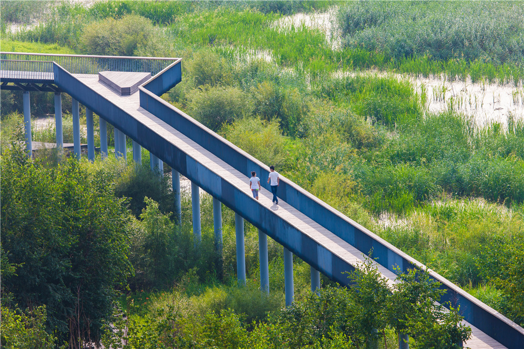 通過(guò)場(chǎng)地的轉(zhuǎn)換設(shè)計(jì),使?jié)竦氐亩喾N功能得以彰顯:包括收集、凈化、儲(chǔ)存雨水和補(bǔ)給地下水。昔日的濕地得到了恢復(fù)和改善,鄉(xiāng)土生物多樣性得以保存,同時(shí)為城市居民營(yíng)造了舒適的居住環(huán)境。正因其對(duì)生態(tài)的顯著改善,該公園已晉升成國(guó)家級(jí)城市濕地公園。