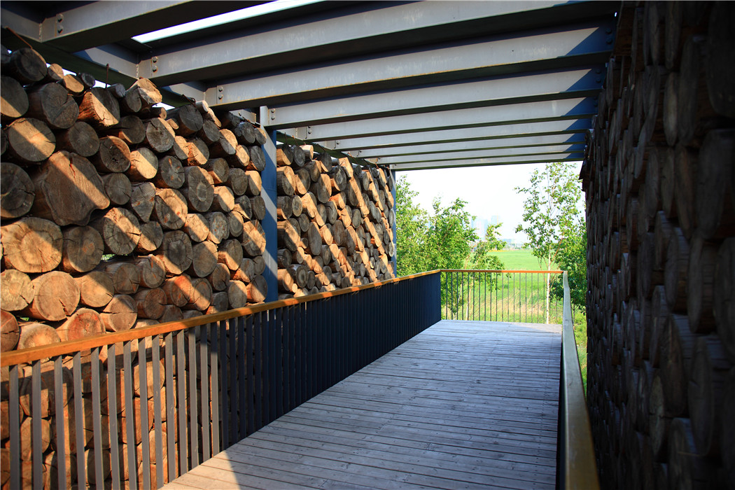3. 高架棧橋連接山丘,給游客們帶來(lái)了凌駕于樹冠之上的體驗(yàn)。多個(gè)觀光平臺(tái),5個(gè)亭子(竹、木、磚、石和金屬)和兩個(gè)觀光塔(一個(gè)是鋼質(zhì)高塔,位于東部角落里;另外一個(gè)是木質(zhì)的樹狀高塔,坐落在西北角)。在山丘之上,由空中走廊連接,通過(guò)這些體驗(yàn)空間的設(shè)計(jì),使人遠(yuǎn)可眺公園之泱泱美景,近可體驗(yàn)公園內(nèi)各種自然景觀之元素。
