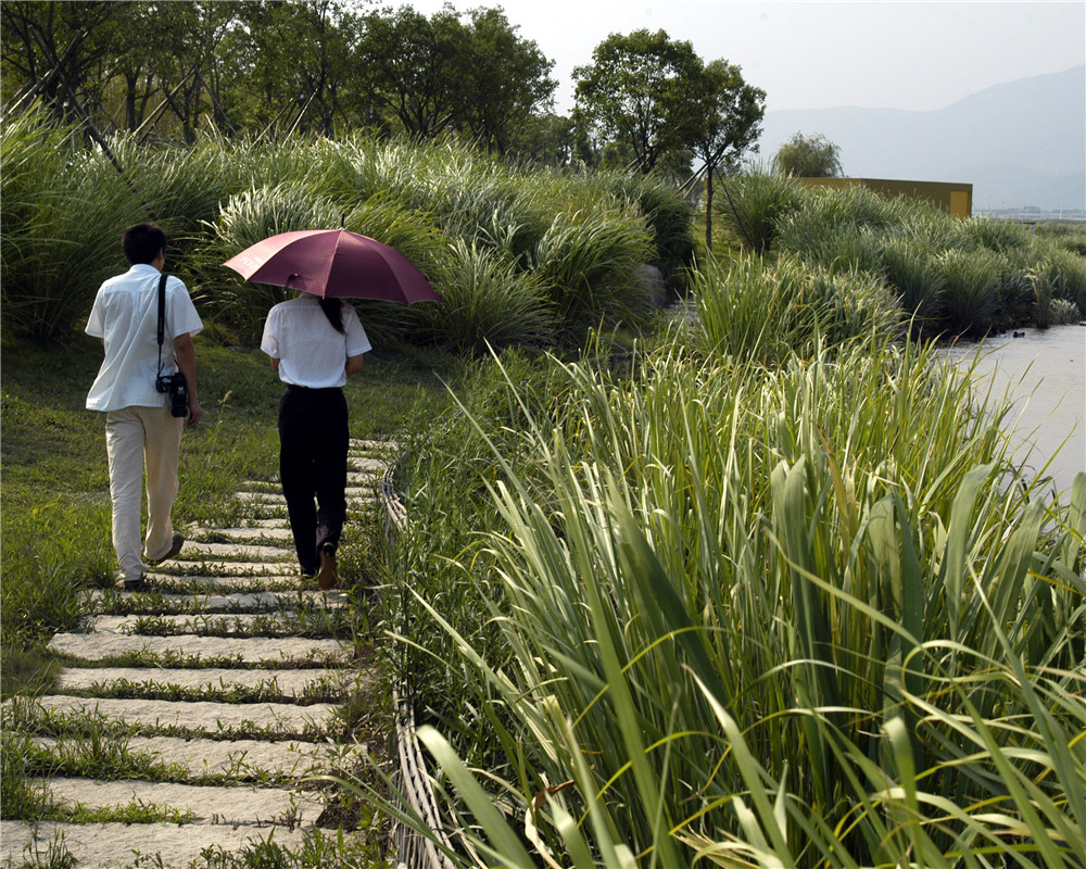 自然過程的保護和恢復(fù):長達2公里的永寧江水岸恢復(fù)了自然形態(tài),沿岸濕地系統(tǒng)得到了恢復(fù)并完善;形成了一條內(nèi)河濕地系統(tǒng),對流域的防洪滯洪起到積極作用;