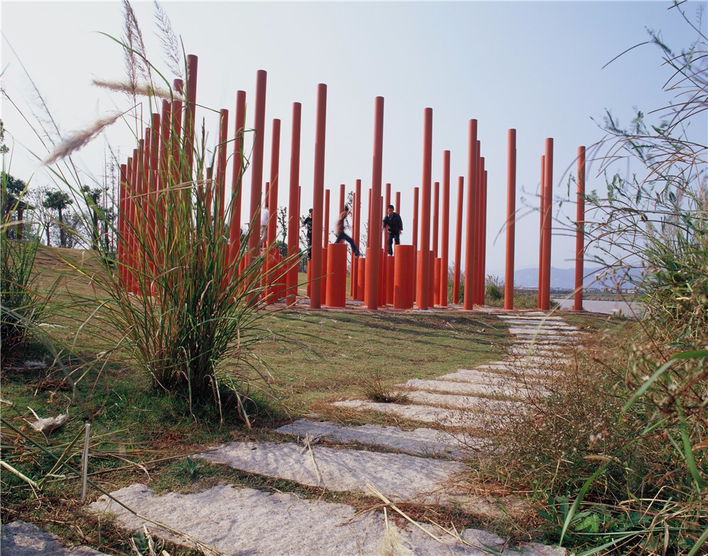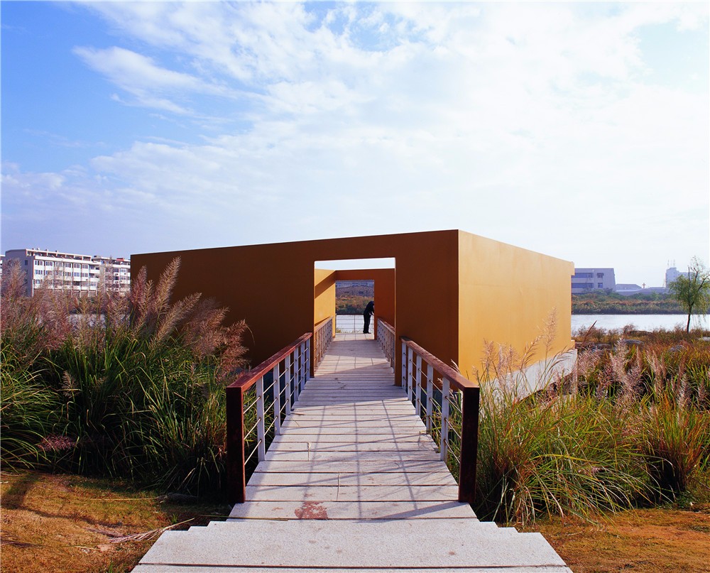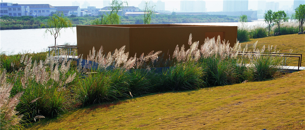 為廣大市民提供了一個富有特色的休閑環(huán)境。無論是江濱的芒草叢中,還是在橫垮在內(nèi)河濕地的棧橋之上,也或是野草掩映的景觀盒中,我們都可以看到青年男女,老人和小孩在快樂地享受著公園的美景和自然的服務(wù):遠山被招引入公園中的美術(shù)館,黃巖的歷史和故事不經(jīng)意間在公園的使用者中傳詠著、解釋著,對家鄉(xiāng)的歸屬感和認同感由此而生;不曾被注意的鄉(xiāng)土野草突然間顯示出無比的魅力,一種關(guān)于自然和環(huán)境的新的倫理猶如潤物無聲的春風(fēng)細雨,在參觀者的心中孕育:愛護腳下的每一種野草,它們是美的;籍借著共同的自然和鄉(xiāng)土的事與物,人和人之間的交流也因此在這里發(fā)生:青年男女之間,家庭成員之間,同事和同游之間。