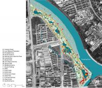對于尚未渠化的河堤,如西部江堤段,改造方式為:根據(jù)新的防洪過水量要求,保留江岸的沙洲和葦叢以作為防風(fēng)浪的障物,并保留和恢復(fù)濱水帶的濕地;完全用土來作堤,并放緩堤岸護坡至1:3以下;部分地段擴大淺水灘地形成滯流區(qū)或人工濕地、淺潭,為魚類和多種水生生物提供棲息地、繁育環(huán)境和洪水期間的庇護所;進行河床處理,造成深槽和淺灘,形成魚礁坡上種植鄉(xiāng)土物種,形成人可以接近江水的界面。