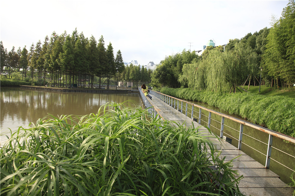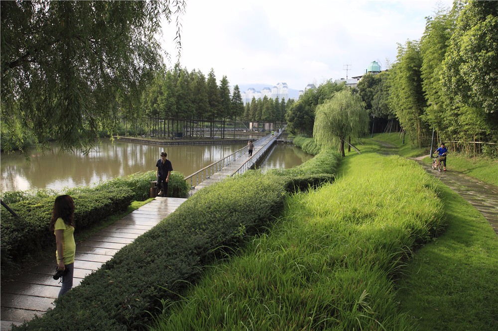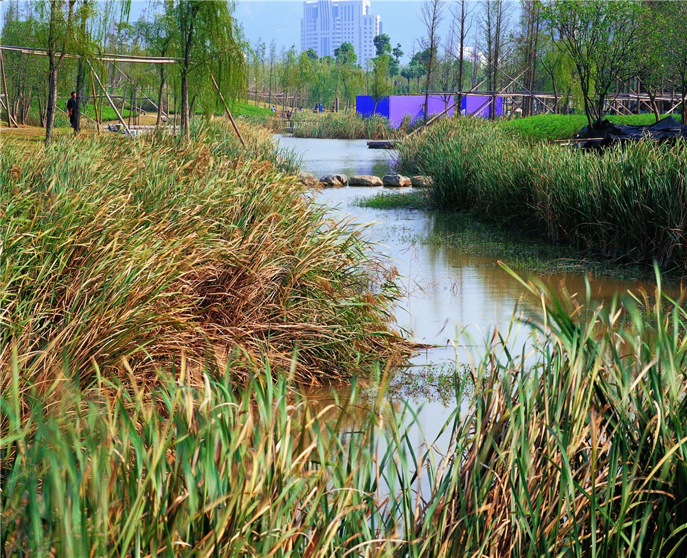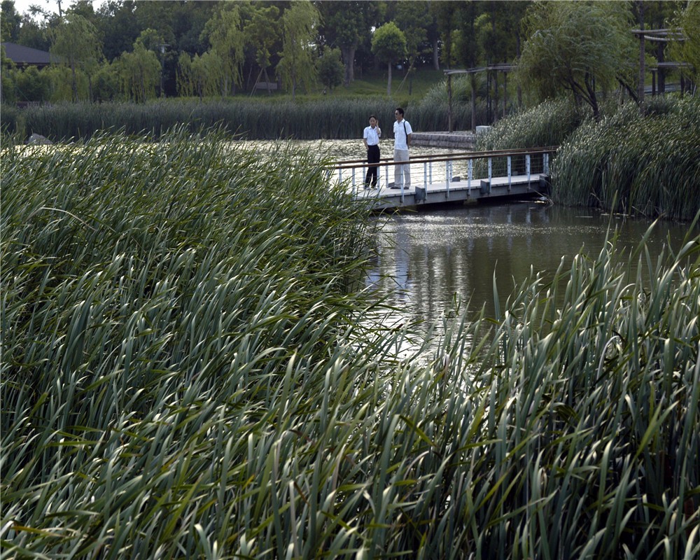 生物過程的保護和促進:保留濱水帶的蘆葦、菖莆等種群,大量應(yīng)用鄉(xiāng)土物種進行河堤的防護,在濱江地帶形成了多樣化的生境系統(tǒng)。整個公園的綠地面積達到75%,初步形成了物種豐富多樣的生物群落。