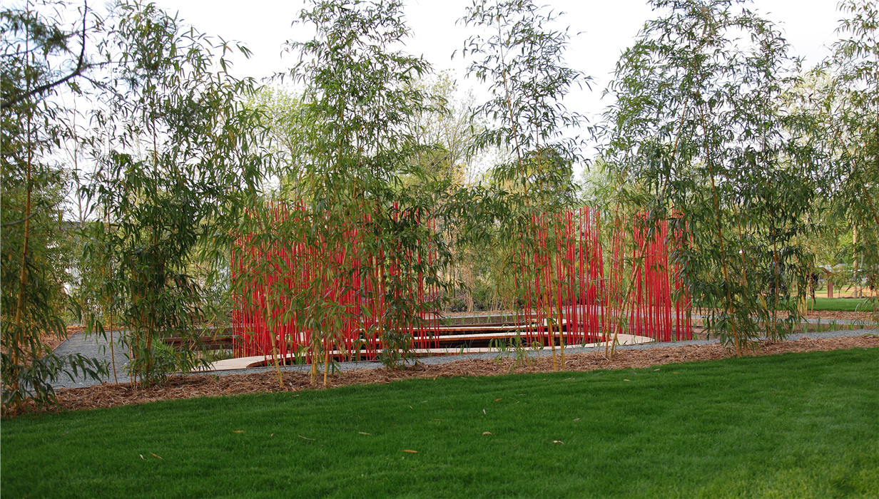 方與圓,直與曲,飽和的紅色與變換的水色和天空,生機勃勃的綠色竹叢與刺上天空的紅色竹竿,從元素到空間,“方圓”讓人體驗到的是中國:中國人關(guān)于雨和水的智慧,關(guān)于棲居環(huán)境營造的智慧,以及關(guān)于人和自然關(guān)系的智慧;是傳統(tǒng)的中國,更應是當代的中國!