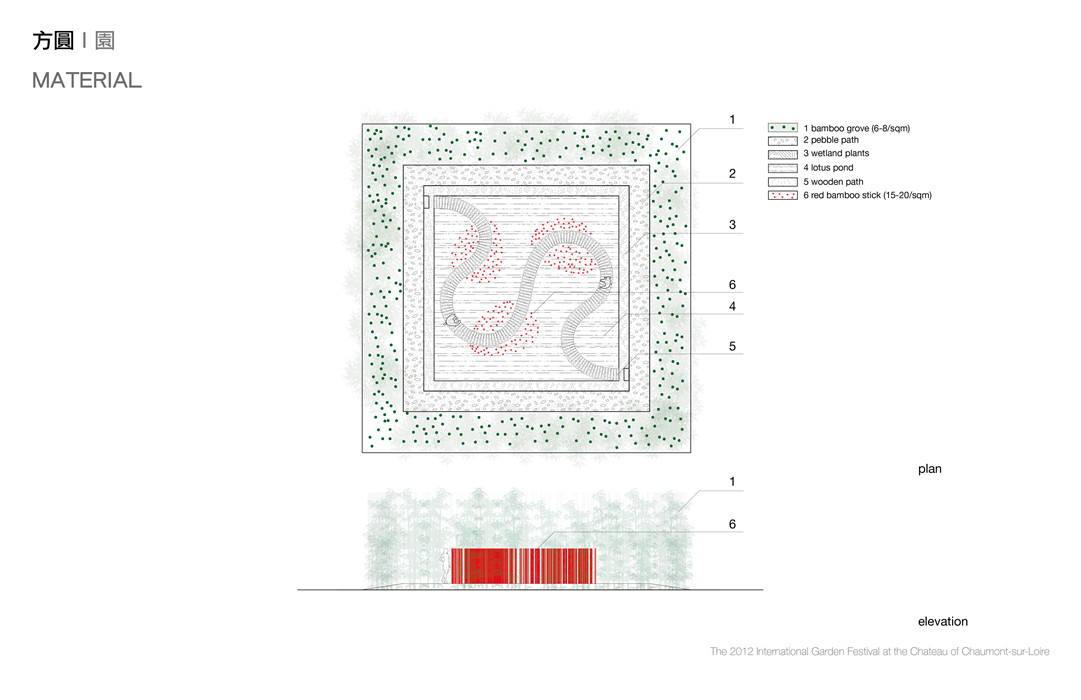 這是一個微型雨水花園的實驗案例.本項目是2013法國修蒙創(chuàng)意園林展的作品,并作為永久作品保留。方圓將當代雨水利用理念及傳統(tǒng)造園哲學相結(jié)合,創(chuàng)造親切而富有美感的觀賞和體驗空間。它是對中國傳統(tǒng)園林的當代解讀,整體為外方內(nèi)圓的形式設計,通過圍合空間的建立和運用小中見大的中國園林手法以及填挖方的工程技術(shù)。