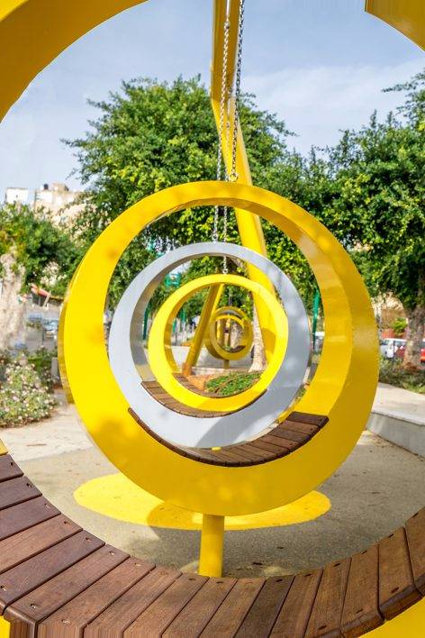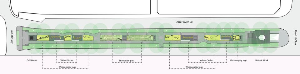正如以色列和其他國家的許多歷史街道一樣,埃米爾林蔭道也由公路旁的邊緣化地帶轉(zhuǎn)變?yōu)橐粋€(gè)活躍的新場(chǎng)所。貫穿整條街道的“黃色圓圈”和游戲空間共同在城市的核心地帶塑造出一個(gè)獨(dú)一無二的區(qū)域。