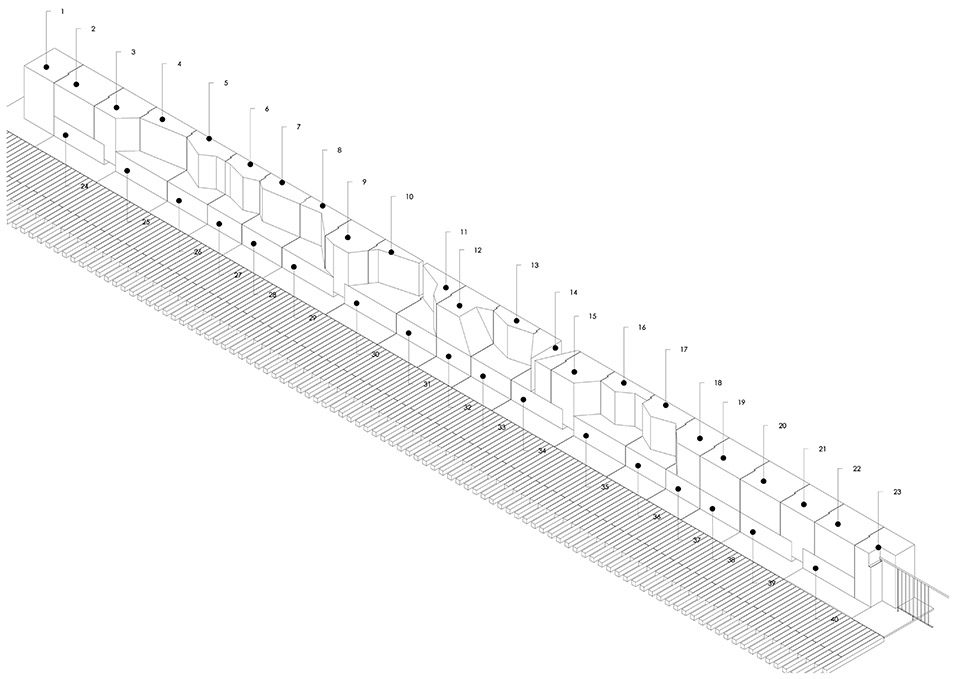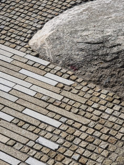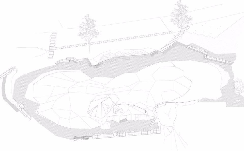 隨著時(shí)間的推移,原場地處的混凝土臺(tái)階已逐漸風(fēng)化且破敗不堪,影響了包括石頭本身和周圍環(huán)境在內(nèi)的景觀。因此,該項(xiàng)目目的為對(duì)這個(gè)破損的臺(tái)階進(jìn)行拆除并重建,使該處景觀煥發(fā)全新的光彩。