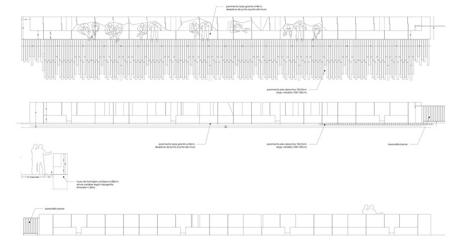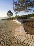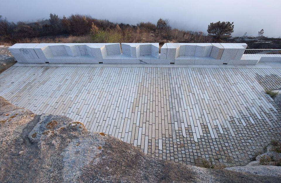 該項(xiàng)目實(shí)施的第一步是原廠地的清理工作,即拆除原有破損臺(tái)階。隨后將場地環(huán)境中的其他風(fēng)化部分及雜草灌木移除。清除工作完成后,場地中展現(xiàn)出全新的自然風(fēng)貌,這促使設(shè)計(jì)師開始重新思考該項(xiàng)目的設(shè)計(jì)方案。他們?cè)噲D將這個(gè)單純的瞭望臺(tái)與鄰接步行道路相連,使其與當(dāng)?shù)厝祟愇幕z產(chǎn)相關(guān)聯(lián)。一條坡面步行道將來訪行人引向Corrubedo自然公園的沙丘。最后,設(shè)計(jì)師嘗試在場地中修建全新的落腳點(diǎn),使來訪者可以盡覽大西洋和Corrubedo自然公園美景。然而最重要的是,設(shè)計(jì)師將Cida原住民棲息地轉(zhuǎn)變成獨(dú)特的景觀環(huán)境,并充分尊重了他們的文化及歷史價(jià)值。