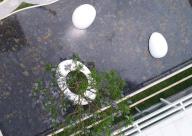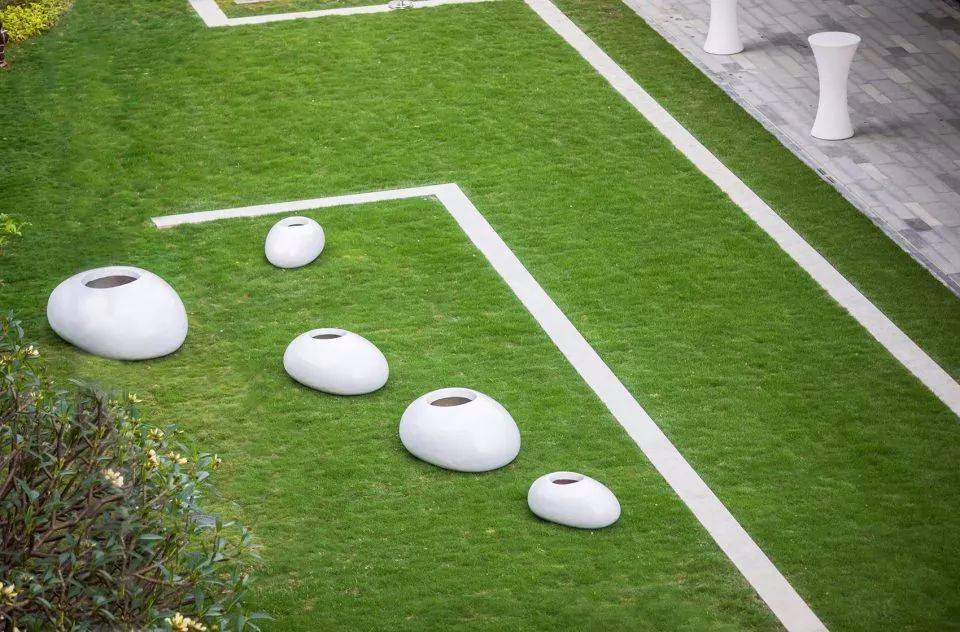 ▼三個白色玻璃鋼雕塑小品浮于水面上