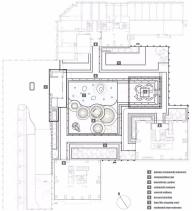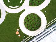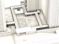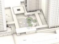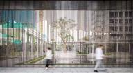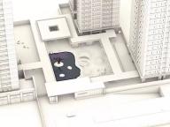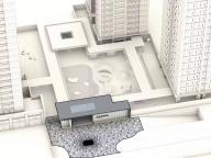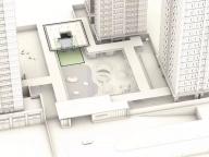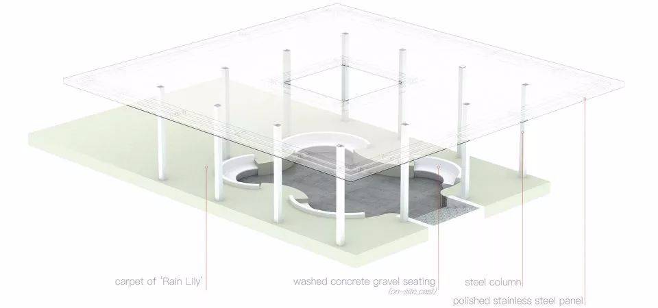 這是一個半下沉的交流空間,設(shè)計的靈感源于古時佛山被譽為“天下四大聚”-也就是今天說的經(jīng)濟樞紐城市, 設(shè)計通過四把弧形水磨石座椅,相互面對面地放置,潛意識中促進和鼓勵鄰里之間的社交。 這個空間的大小也可以作為一個小型活動以及社區(qū)會議進行使用。由于佛山氣候炎熱,為了提供更舒適更適合停留的戶外環(huán)境,整個下沉空間由一個通高6m的方形廊架所遮蓋,中間透空以獲取更多天光,廊架底部為鏡面不銹鋼,使得空間感進一步放大。