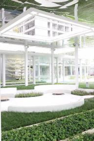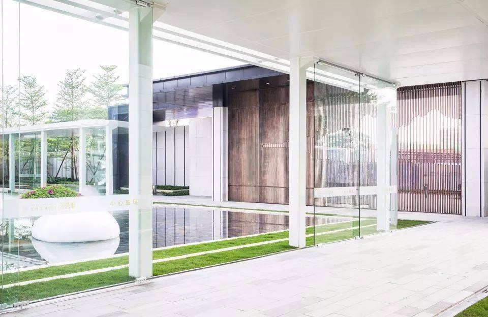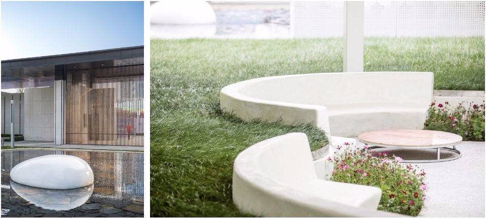 白色系: 水磨石 + 白色鋁板 + 玻璃鋼 (這些材料的整體感較強,不需要接縫或較少,更有助于表達白色的純粹)