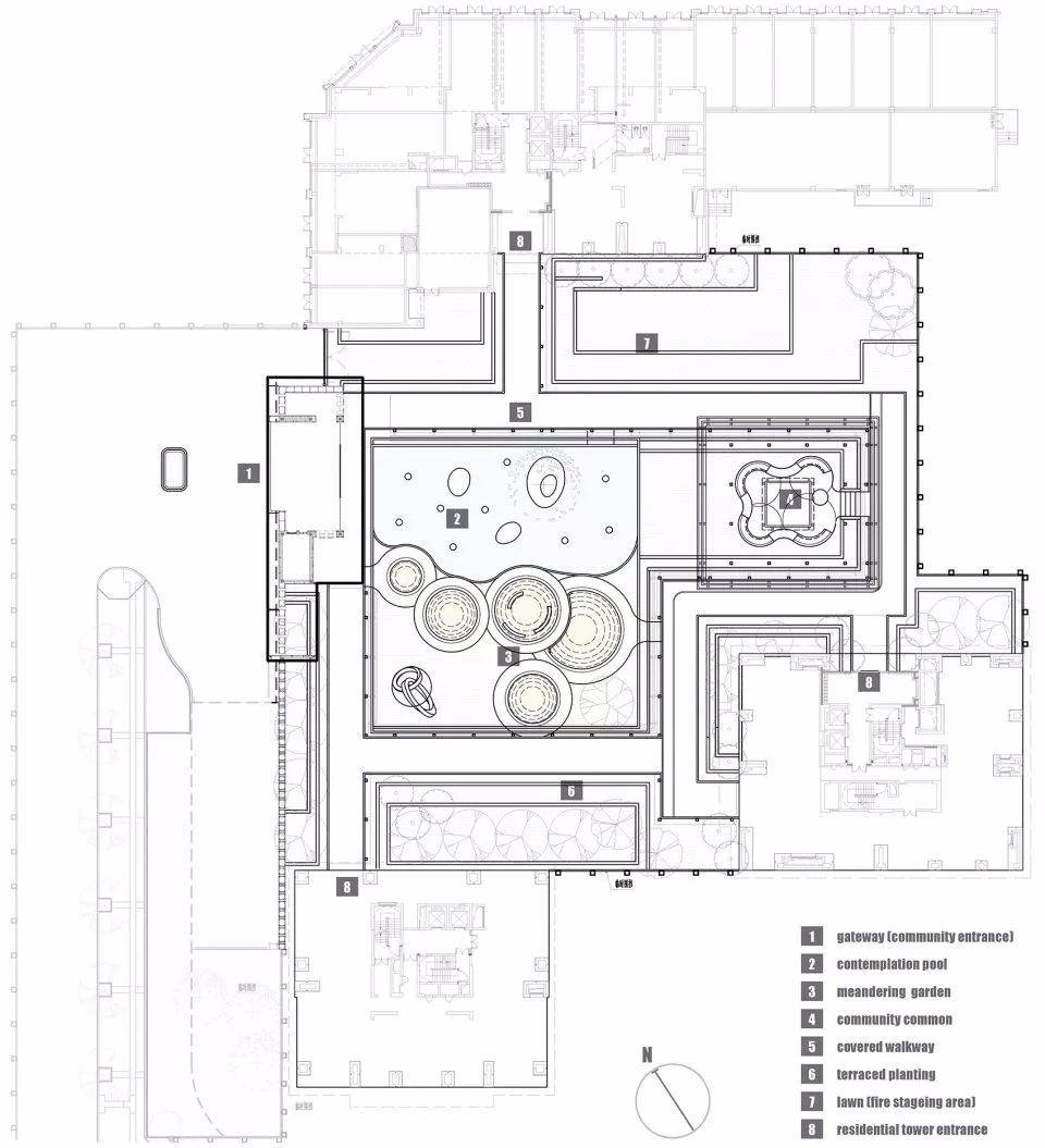 3.彈性靈活的功能空間:我們認(rèn)為未來是一個社交社會,居住區(qū)里亦是如此,因此在設(shè)計中我們盡可能預(yù)留一些可以用來聚會,交流的場所,而并不是靠繁復(fù)的綠化去填塞空間而犧牲了未來大量人流活動的可能性。
