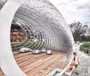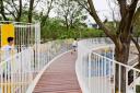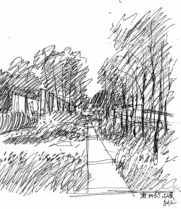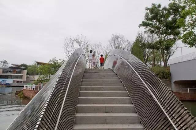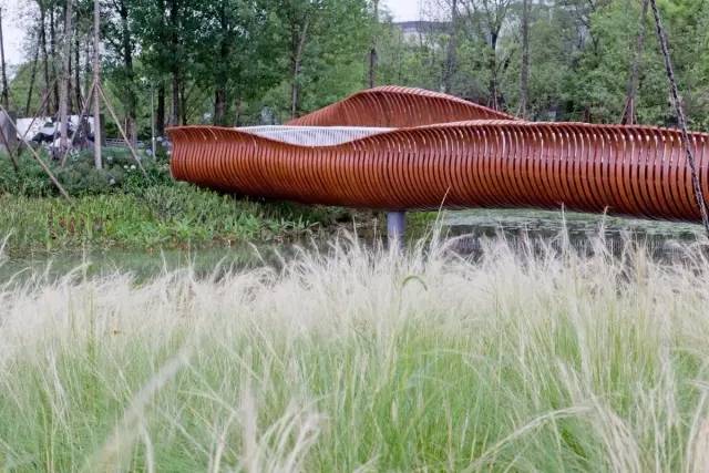 巨浪飛渡:跨越濕地的一座橋(保留原址橋梁),用仿木紋鋁板裝飾成巨浪形態(tài)。