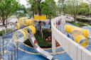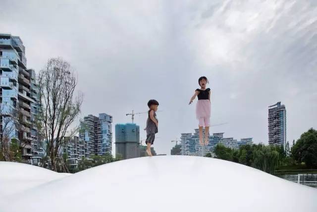 跳跳云:一朵巨大的白云降落在湖邊小島。在這個內(nèi)部充氣的巨大異形蹦床上,孩子們可以體驗一下騰云駕霧的感受。