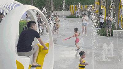 旱噴廣場:利用互動裝置激發(fā)的旱噴可以更好地增強人與人,人與自然的互動。再也不會出現(xiàn)乘興而來,結(jié)果物業(yè)沒有打開噴泉的情況了。想玩水,只需要騎上去踩就可以了。
