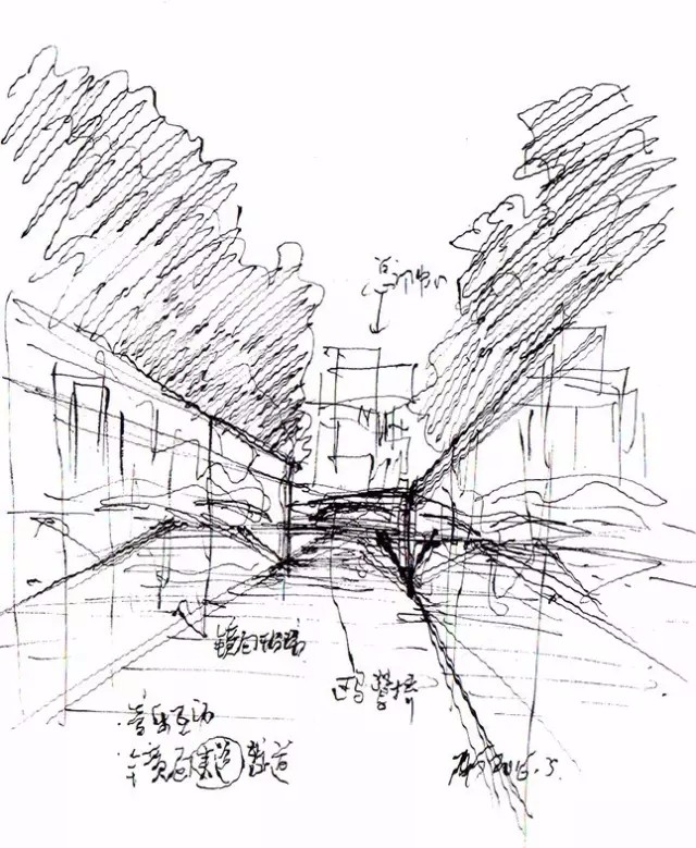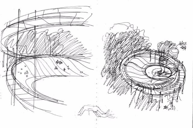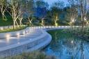 世界之眼:這個節(jié)點在現(xiàn)狀基礎(chǔ)上進行改造而成。包括結(jié)合地形的小劇場,小服務(wù)建筑和濱水倒影水臺。由于湖面已經(jīng)形成,改造只能在現(xiàn)狀湖岸的基礎(chǔ)上進行。倒影水臺中的石材鋪裝通過高低和色彩的變化,暗示陸地和海洋。。