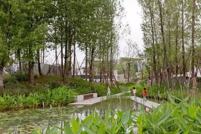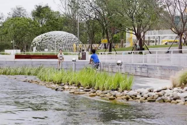 濕地漫步:在現(xiàn)有水系基礎(chǔ)上增加的一塊可以進入的濕地花園。在這里可以看到各種水生植物,可以近距離觀察蝌蚪、青蛙和魚。