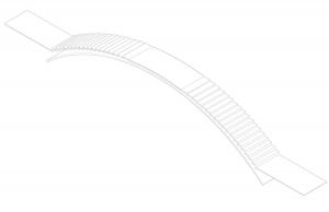 冰凌拱橋:為了確保沿湖流線的系統(tǒng)性,我們在這里新增一座橋,由于通航需求,處理成拱橋。橋體內(nèi)部暗藏LED燈和感應(yīng)器,人行走在橋上,燈光會隨著變化。橋面用鏡面不銹鋼管裝飾,可以反射周邊環(huán)境。