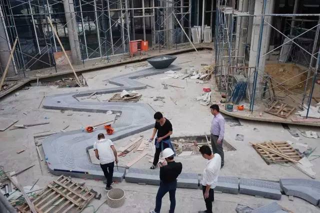 “侵蝕”曲水流觴由張?zhí)凭坝^事務(wù)所設(shè)計(jì)、張?zhí)扑囆g(shù)工作室制作完成,同樣以“時(shí)間”為考慮因素。以水景為載體,以時(shí)間對(duì)空間的影響為表達(dá)元素,打造一處簡(jiǎn)潔卻不乏細(xì)節(jié)的主題空間。