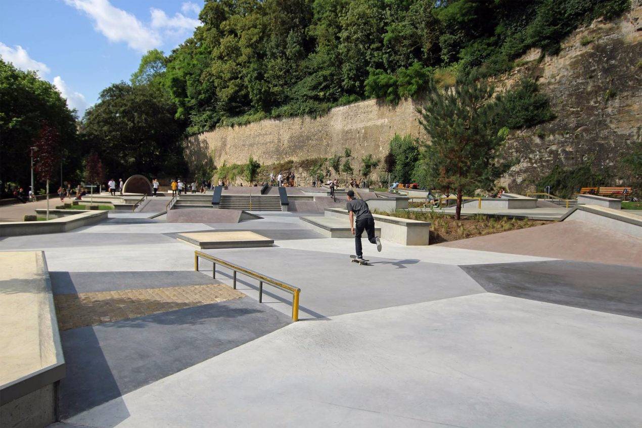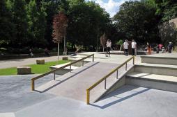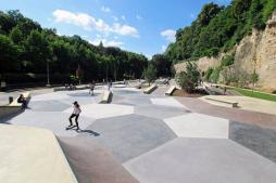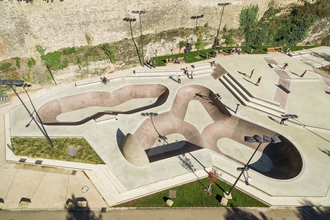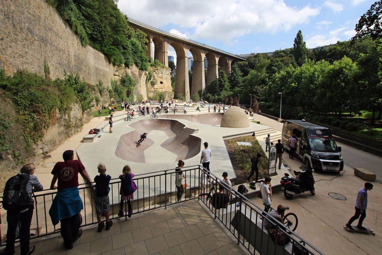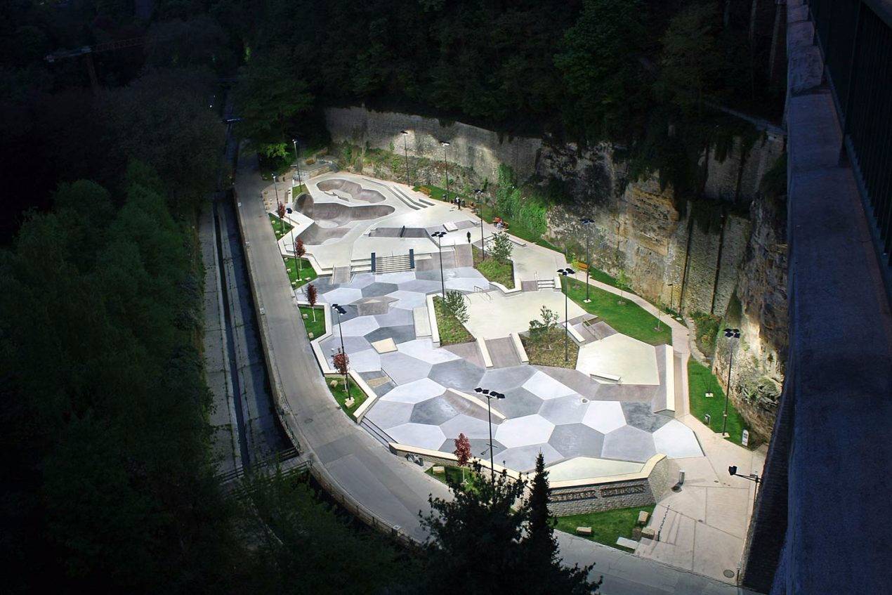 通過(guò)修建滑板公園,盧森堡市彰顯了其作為歐洲特大都市的身份地位。公園總面積為2750平方米,包括一個(gè)小型的碗狀場(chǎng)地,一個(gè)帶有3.2米高擋墻的大型碗狀場(chǎng)地,一座圓頂以及一個(gè)街道廣場(chǎng),是歐洲規(guī)模最大也是最具吸引力的滑板公園之一。