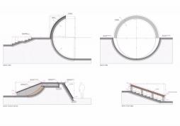Constructo Skatepark事務(wù)所于2014年贏得了設(shè)計(jì)與建造競(jìng)賽。團(tuán)隊(duì)在設(shè)計(jì)過(guò)程中與當(dāng)?shù)鼐用褚约盎鍚酆谜邆冞M(jìn)行了深入探討,以充分滿足他們的要求和愿望。建造過(guò)程耗時(shí)12個(gè)月,于2016年7月正式對(duì)公眾開放。為了使公園充分融入場(chǎng)地所在的歷史環(huán)境,設(shè)計(jì)師對(duì)Vauban古堡的幾何形態(tài)重新進(jìn)行了闡釋,這體現(xiàn)在場(chǎng)地周圍的長(zhǎng)凳和臺(tái)階上。石墻和長(zhǎng)凳的表面被結(jié)合為一個(gè)整體,使滑板公園的邊界融入了Vauban古堡的圍墻。