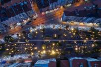照明元素成為該城市走廊設計的重點。樹木中安置青銅不銹鋼板,以映襯位于基地的聚光燈燈光。此外,停車場和購物街的路燈也被專門設計。照明元素還通過將線性LED照明裝置包圍在木制表面來作為強調元素。