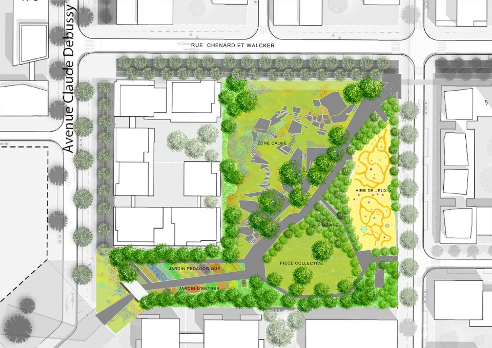 建筑設(shè)計師和開發(fā)商共同決定了公園空間,Ateliers 2/3/4/事務(wù)所負責從中協(xié)調(diào)區(qū)域景觀的升級。