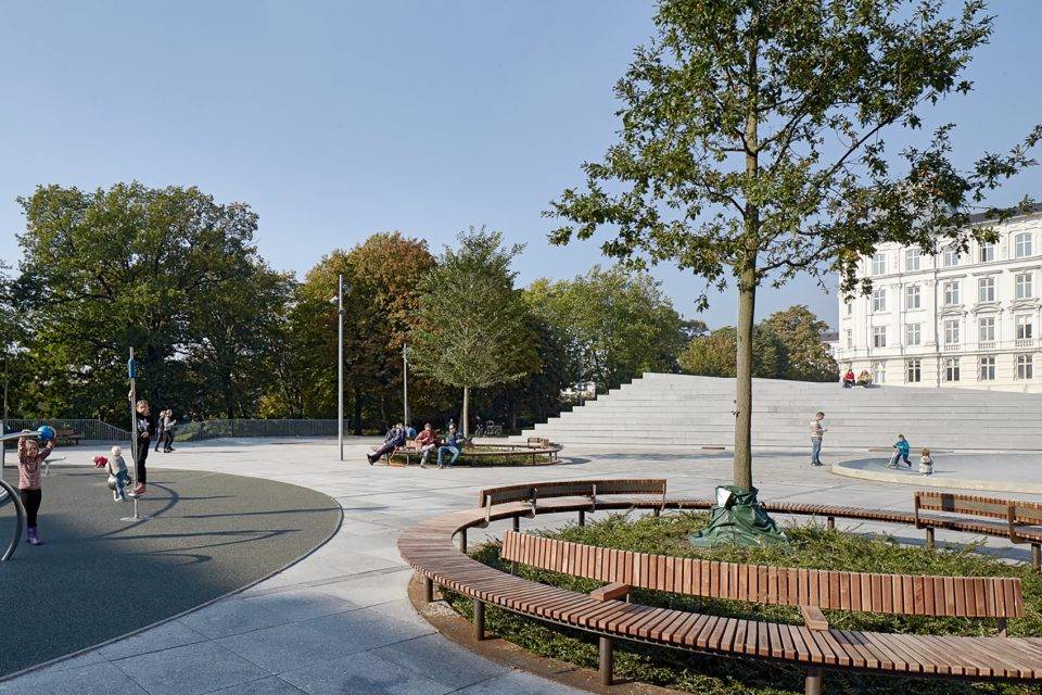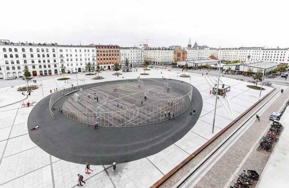 2008年,哥本哈根市議會批準(zhǔn)對該廣場進(jìn)行重大改造,以建立一個開放的、能夠鼓勵市民無拘無束地參與室外活動的空間。設(shè)計師為此打造了一個“飛毯”般的廣場,使其與H.C. ?rsteds公園形成連接,同時強(qiáng)調(diào)了廣場與周圍環(huán)境的連貫性。“飛毯”的綽號源自于其漂浮在地面上方的、柔軟起伏的表面形態(tài)。