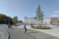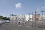 以色列廣場位于一個富有機(jī)遇性的場地,它延伸在兩個不同的區(qū)域之間:每天有數(shù)千人經(jīng)過的繁忙的半戶外集市,以及作為哥本哈根中央綠色空間的H.C. ?rsteds公園。以色列廣場坐落在曾經(jīng)環(huán)繞哥本哈根的歷史城墻頂端。