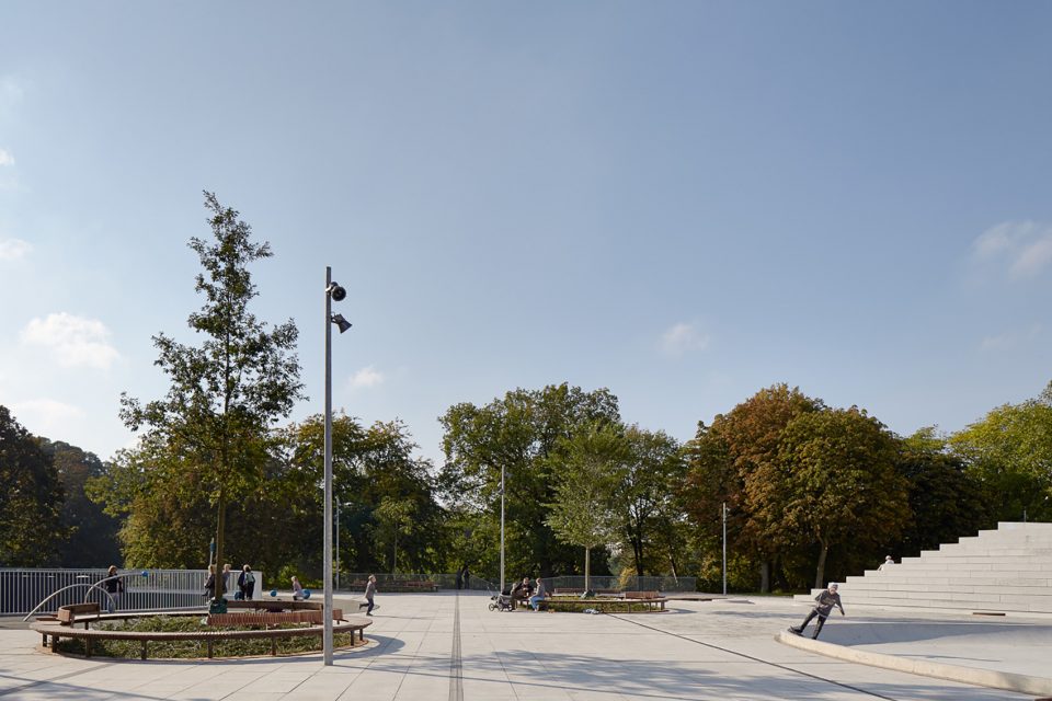 廣場上高架的路燈可根據(jù)使用需求提供柔和的散射光,以及聚焦于特定區(qū)域的、可用于舉辦特殊活動的燈光。廣場的邊緣裝置著小型的LED燈,帶來一種飛毯懸停在空中的錯覺。
