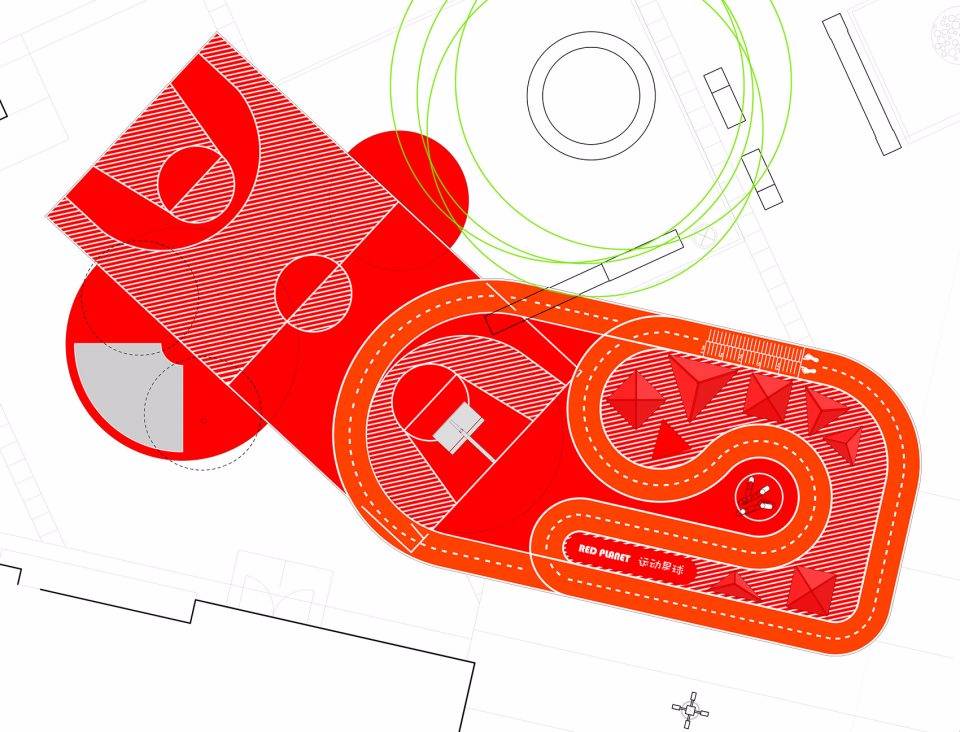 紅色星球有一個(gè)由一些類似鼓起氣泡組成的籃球場,它是一個(gè)超現(xiàn)實(shí)主義的游樂場,而不是一個(gè)普通的籃球場。設(shè)計(jì)出的人造地形可以讓使用者攀登、滑行、坐臥等,孩子們豐富的想象力還會創(chuàng)造出許多設(shè)計(jì)師難以預(yù)測的使用方式。 為了增強(qiáng)環(huán)境的敘事性,設(shè)計(jì)中還引入了一個(gè)彎折的籃球筐,并在內(nèi)部裝上了LED燈來照亮這片區(qū)域。