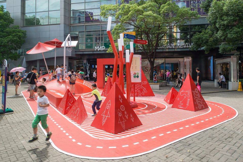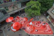 “紅色星球”是一個(gè)公共空間的改造項(xiàng)目,客戶希望通過設(shè)計(jì)促進(jìn)人們之間的互動,吸引顧客,并增強(qiáng)人們在這個(gè)私營的露天式零售街中公共空間的體驗(yàn)。Life Hub@Daning是一個(gè)占地面積25萬平方米的混合功能商業(yè)項(xiàng)目,擁有11萬平方米的購物中心。它露天式零售街的經(jīng)營模式使其成為上海最受歡迎的購物中心之一。