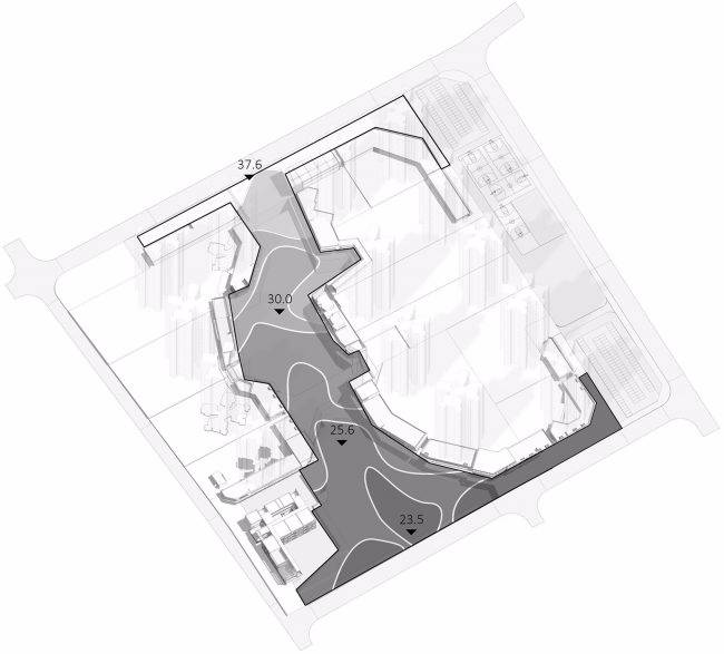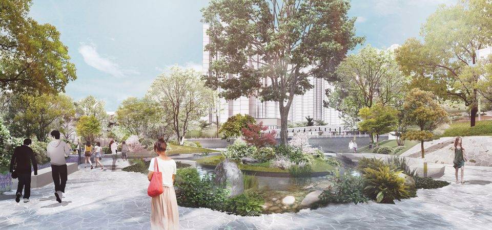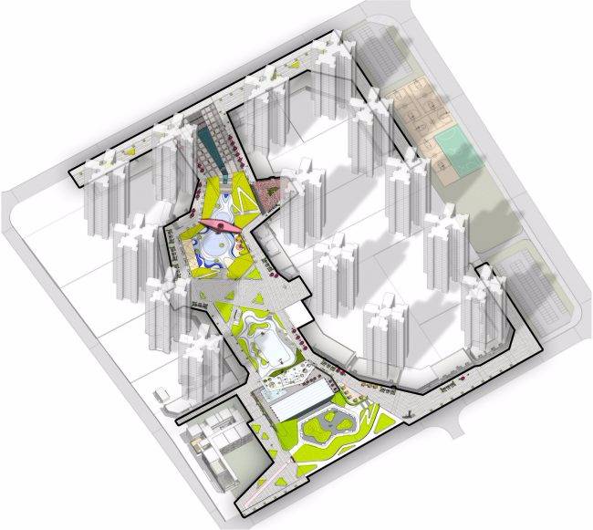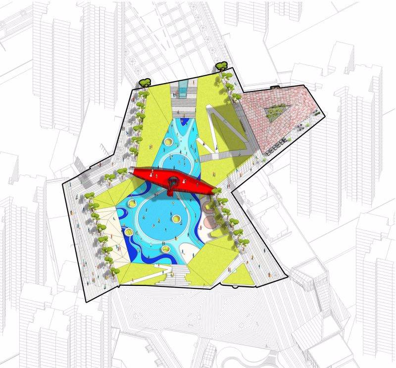 2.景觀設(shè)計需要打造一個共享的趣味谷地空間,同時保持場地內(nèi)商業(yè)街道界面的完整性,合理化解場地高差形成無障礙的步行街。并且在兩條步行街中進(jìn)行有節(jié)奏的連接,根據(jù)空間特點創(chuàng)造出合適不同人群使用的活動空間。