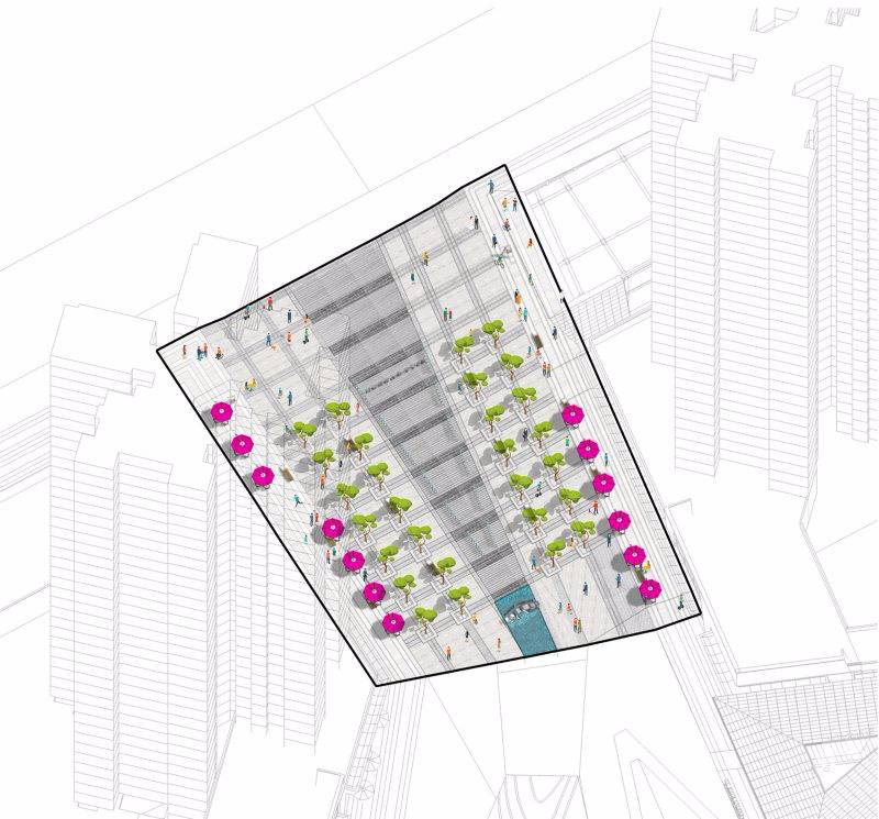▼樹蔭下的空間可作為日常商業(yè)外擺空間