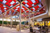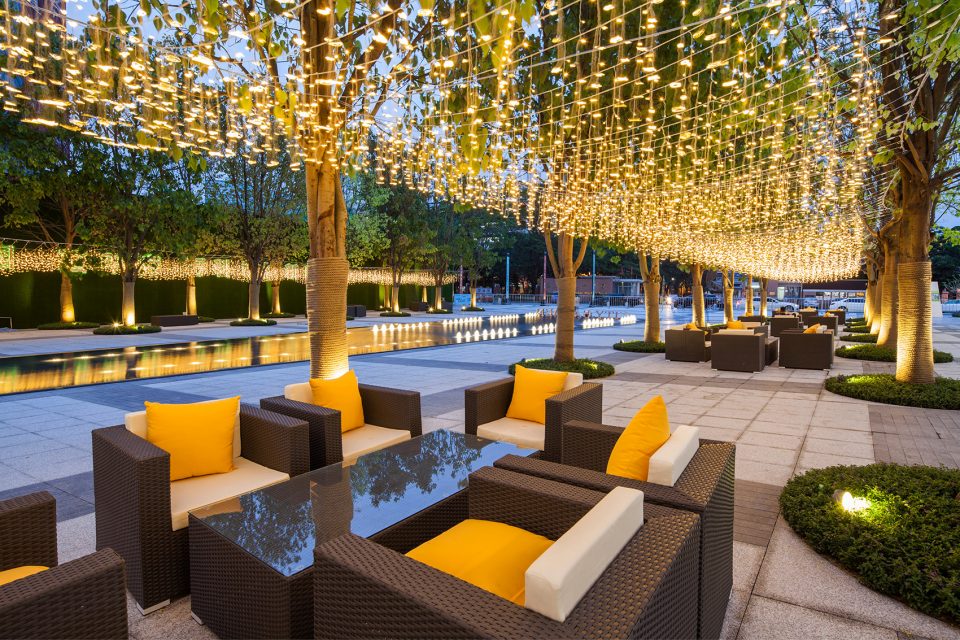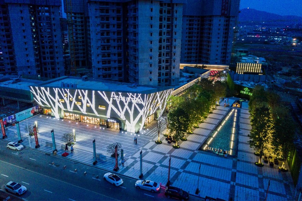 樹陣廣場以樹陣和旱噴水池景觀,既可以調(diào)節(jié)場地微氣候同時強化入口區(qū)的序列感和引導(dǎo)性,樹蔭下的空間可作為日常商業(yè)外擺空間,提高場地的利用率和活力。開闊的場地設(shè)計也有助于入口區(qū)人流的集散。豐富多樣的燈光,為夜間活動的組織增貼一抹別樣的風(fēng)情。
